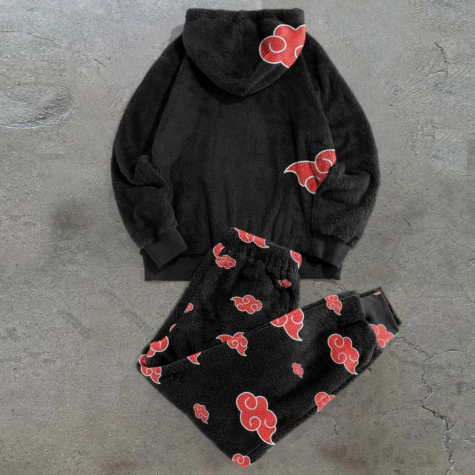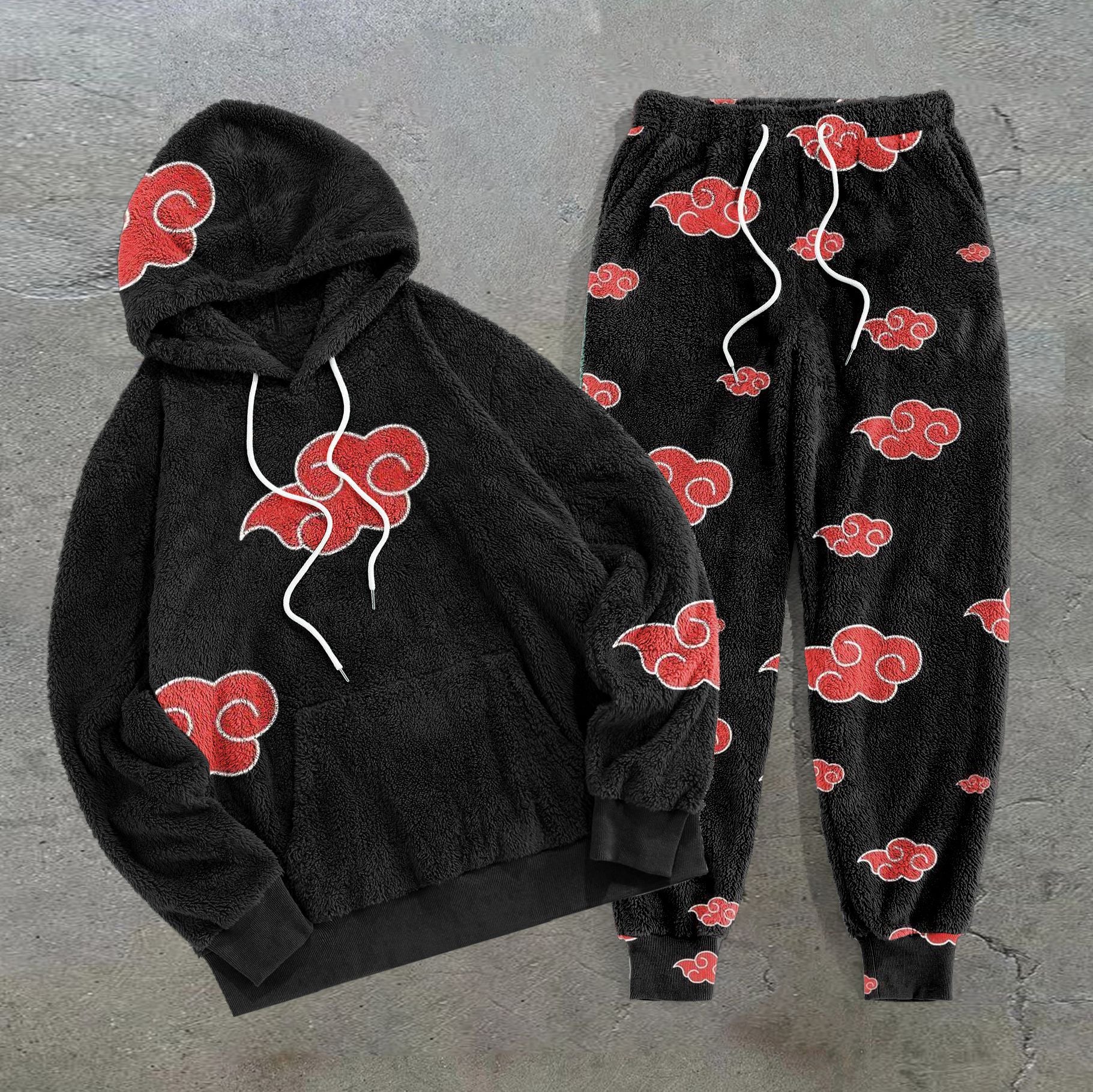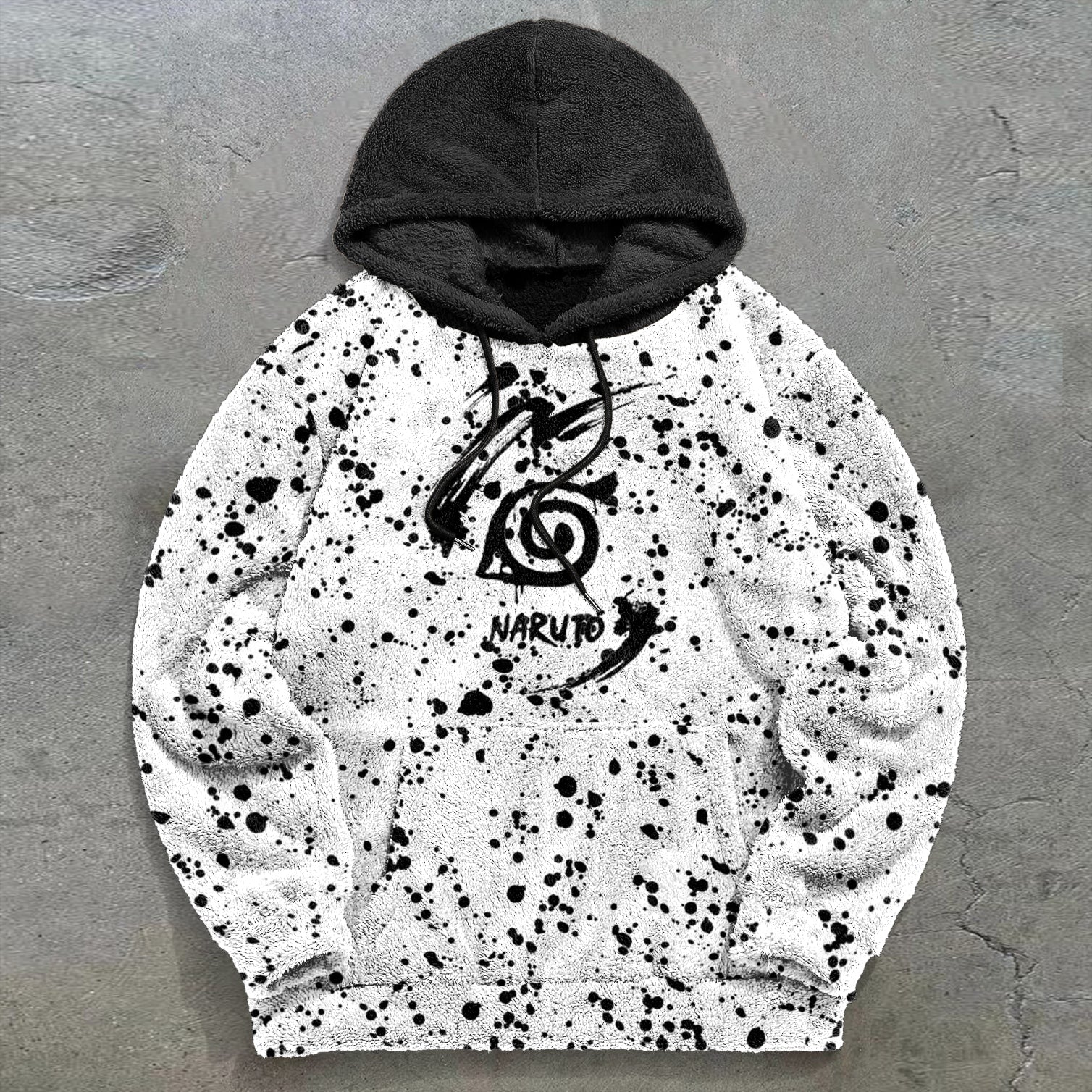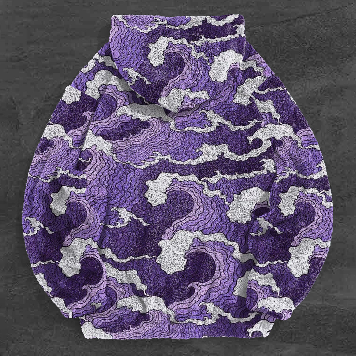 Flame Retro Trendy Print Contrasting Color Plush Hoodies