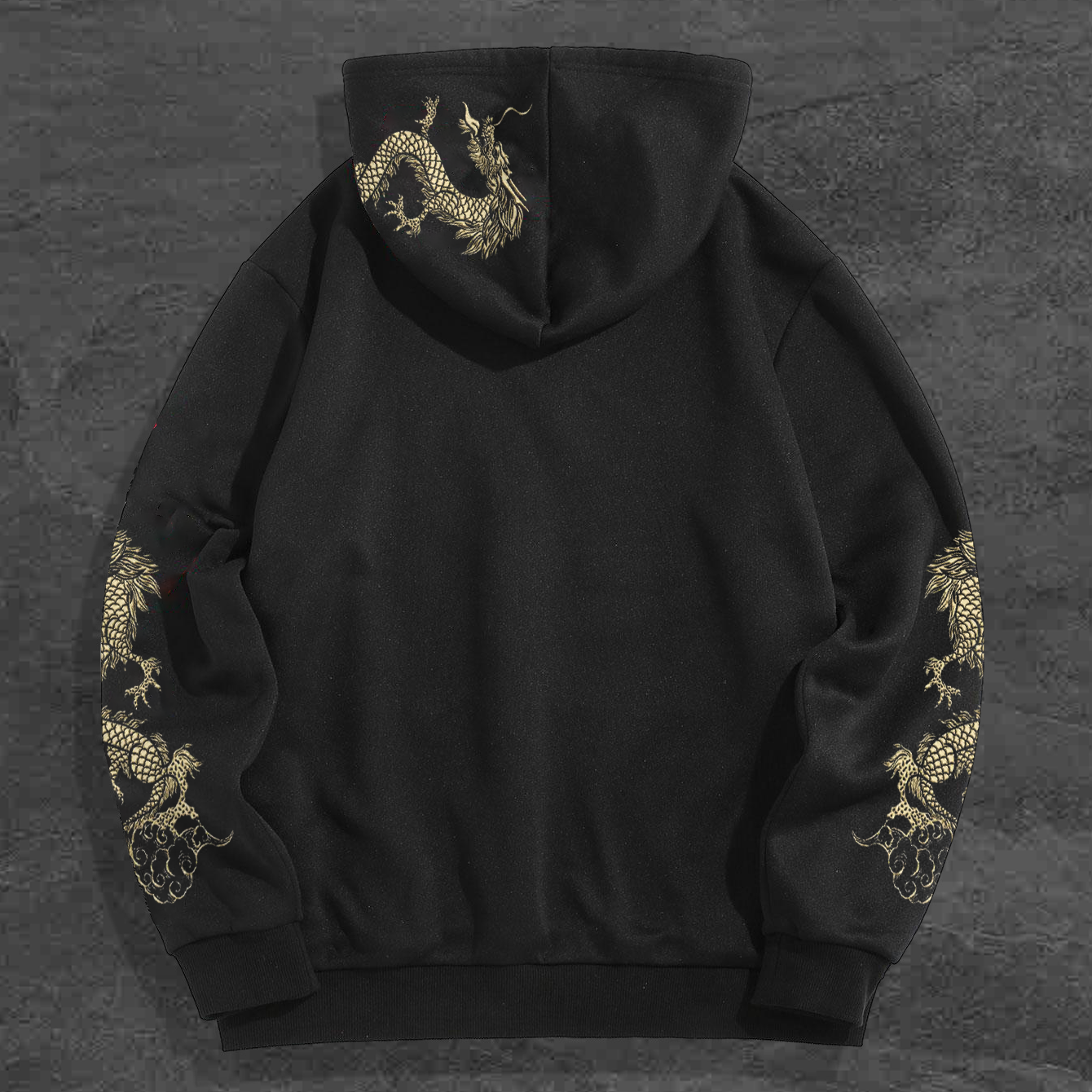 Contrast Fashion Dragon Print Vintage Plush Hoodies