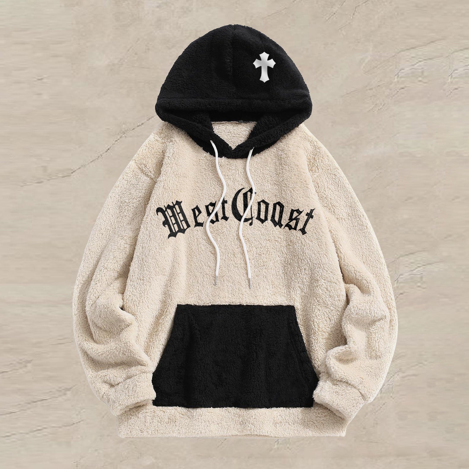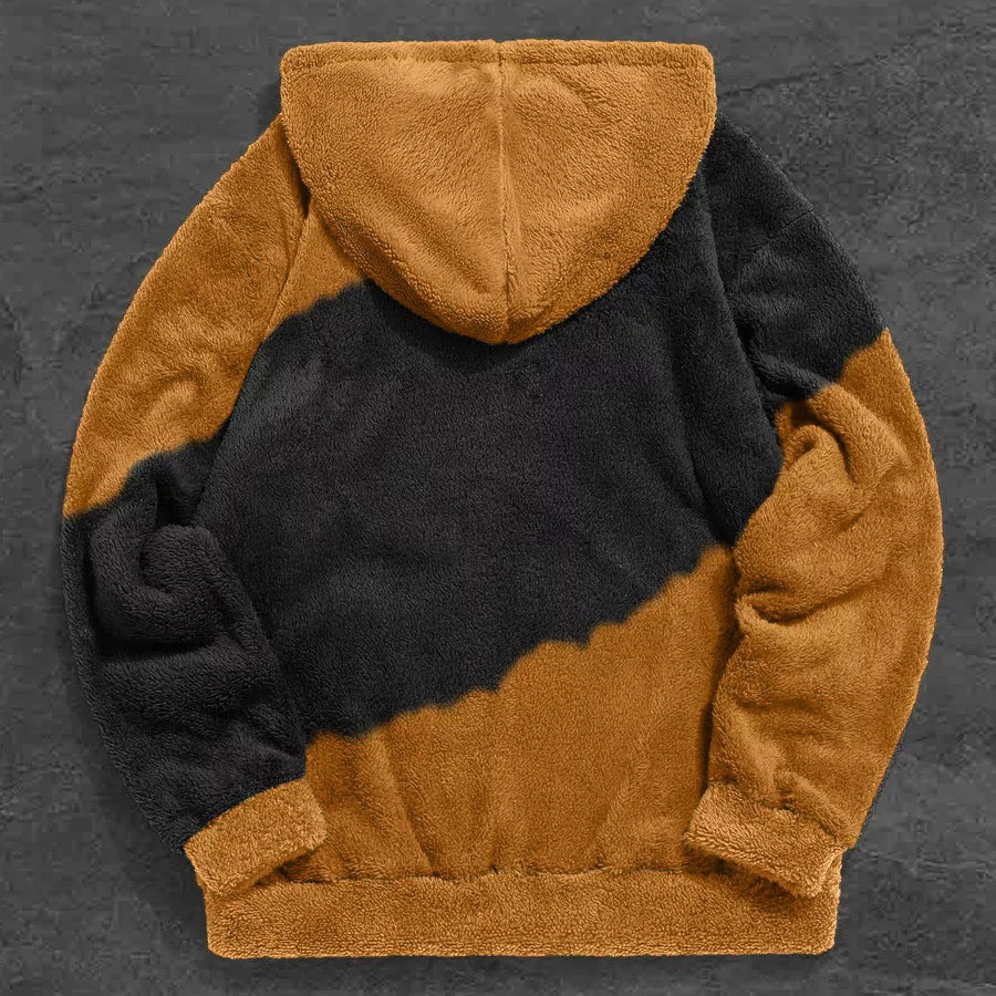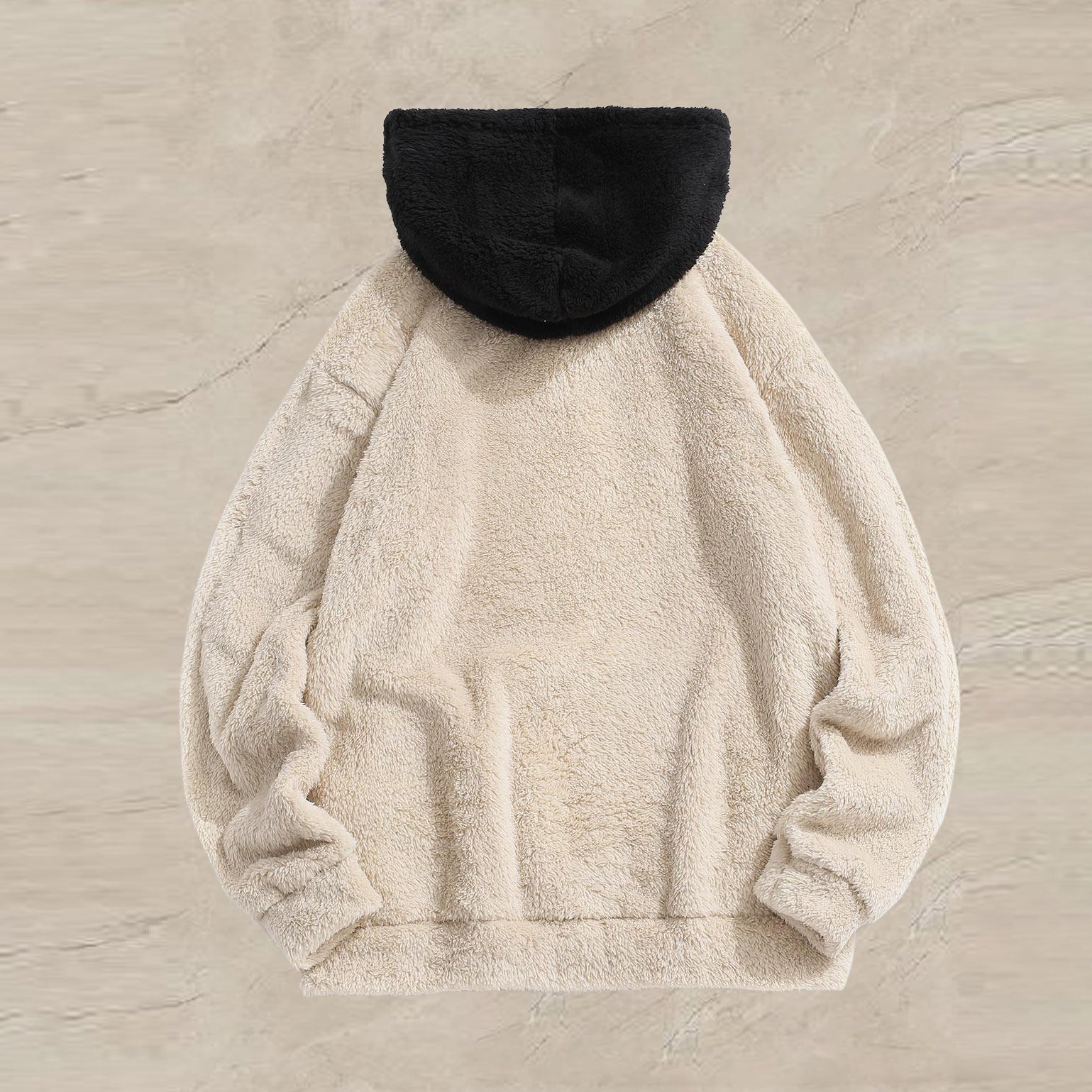 Stylish Retro Casual Plush Hoodie with Contrast Panelings