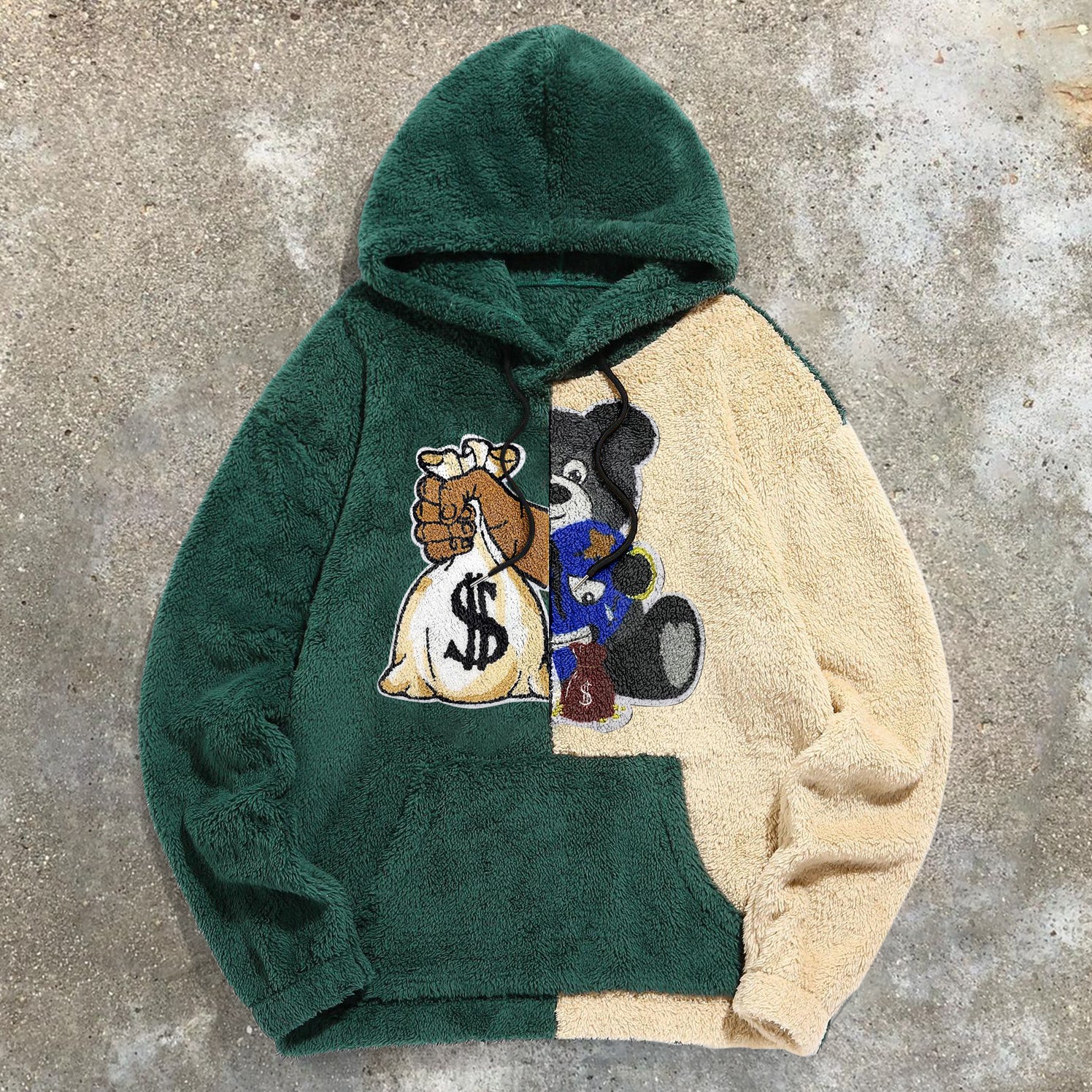 Splicing contrasting color trendy brand printing fashion plush hoodies