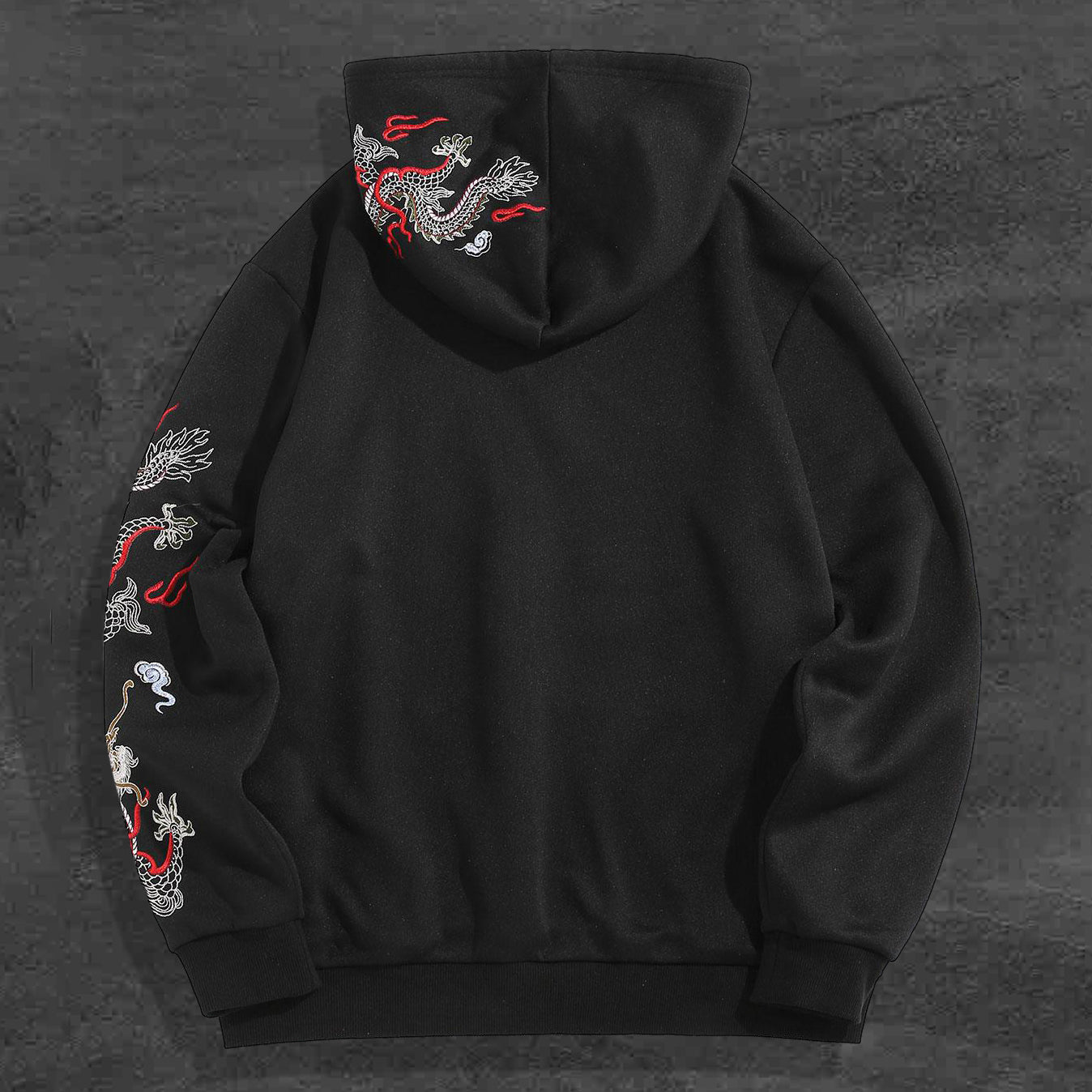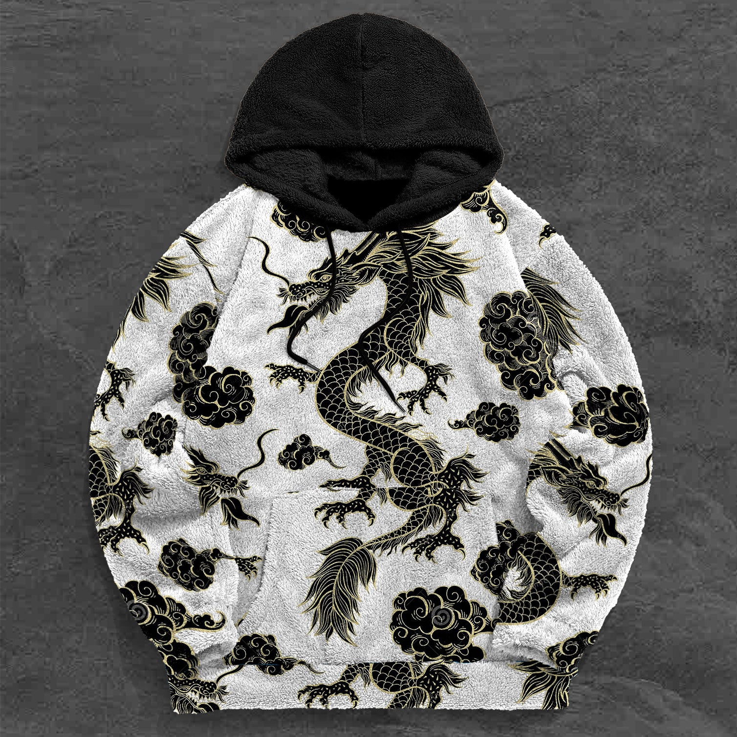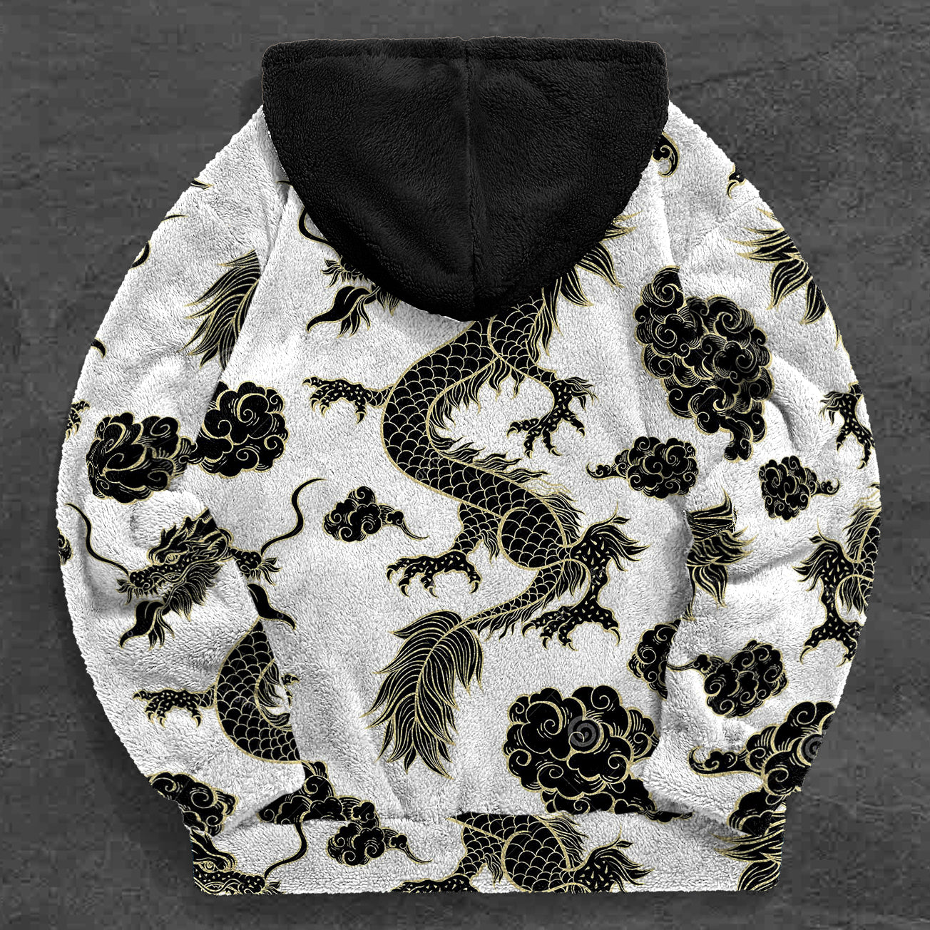 Vintage Dragon Print Contrast Color Trend Plush Hoodie