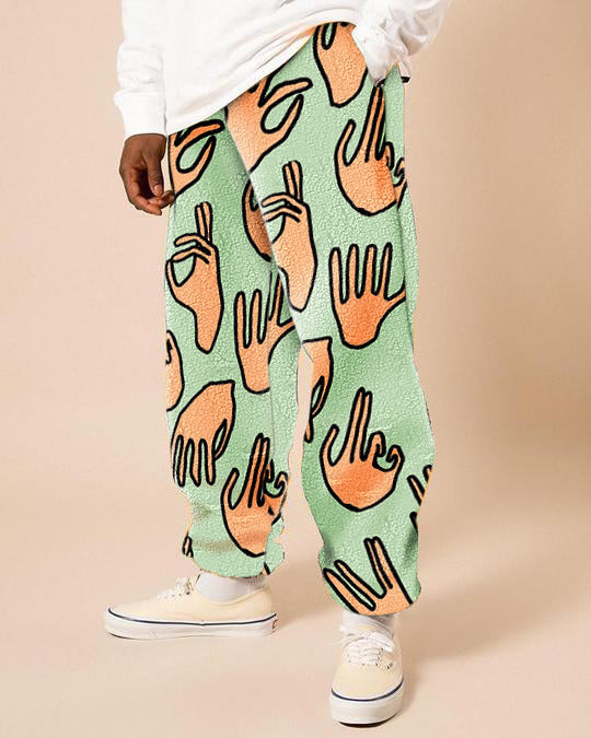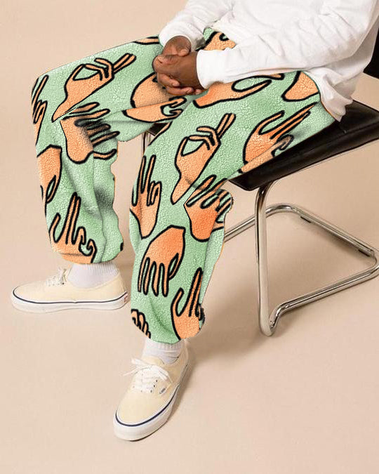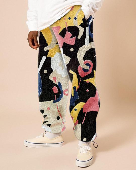 Polar fleece printed casual trousers