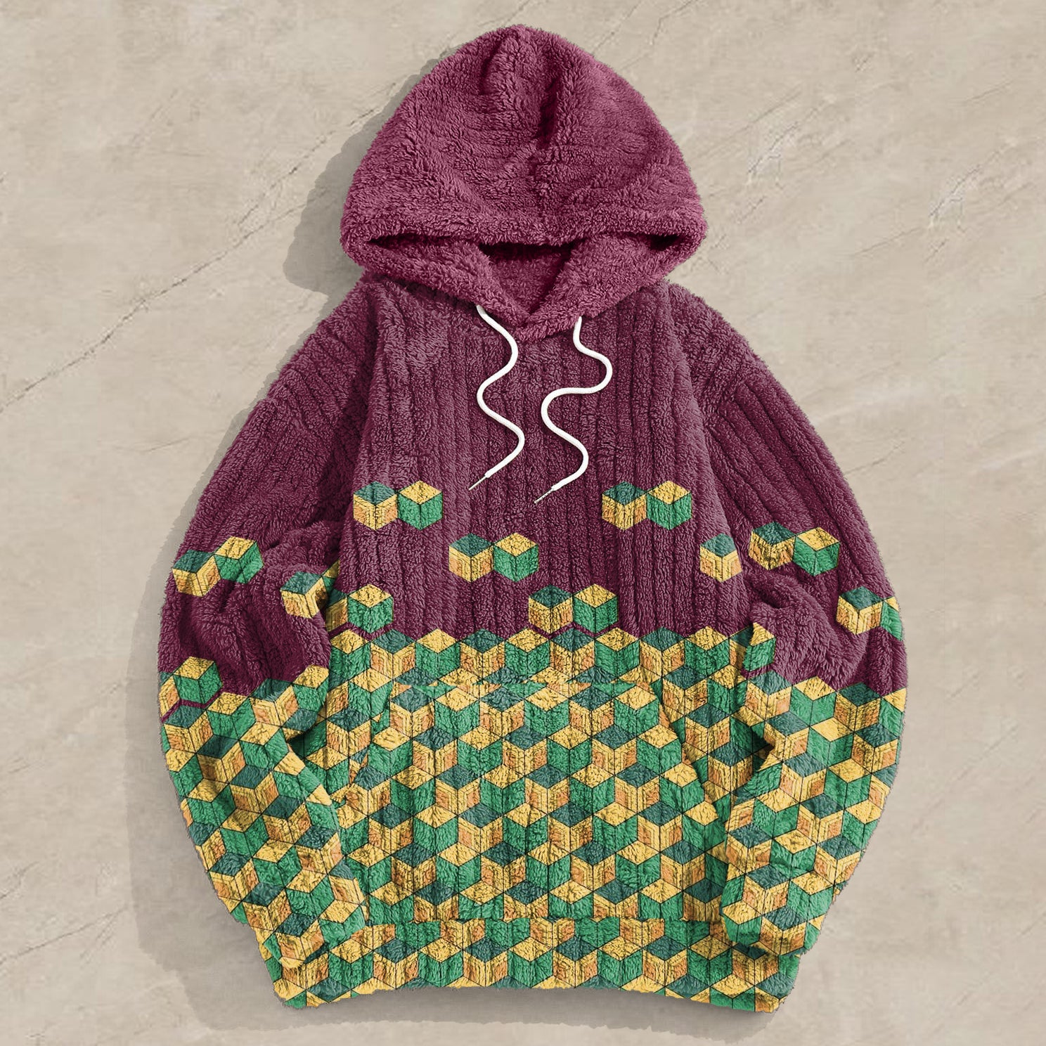 Contrast Patchwork Print Chic Plush Hoodie