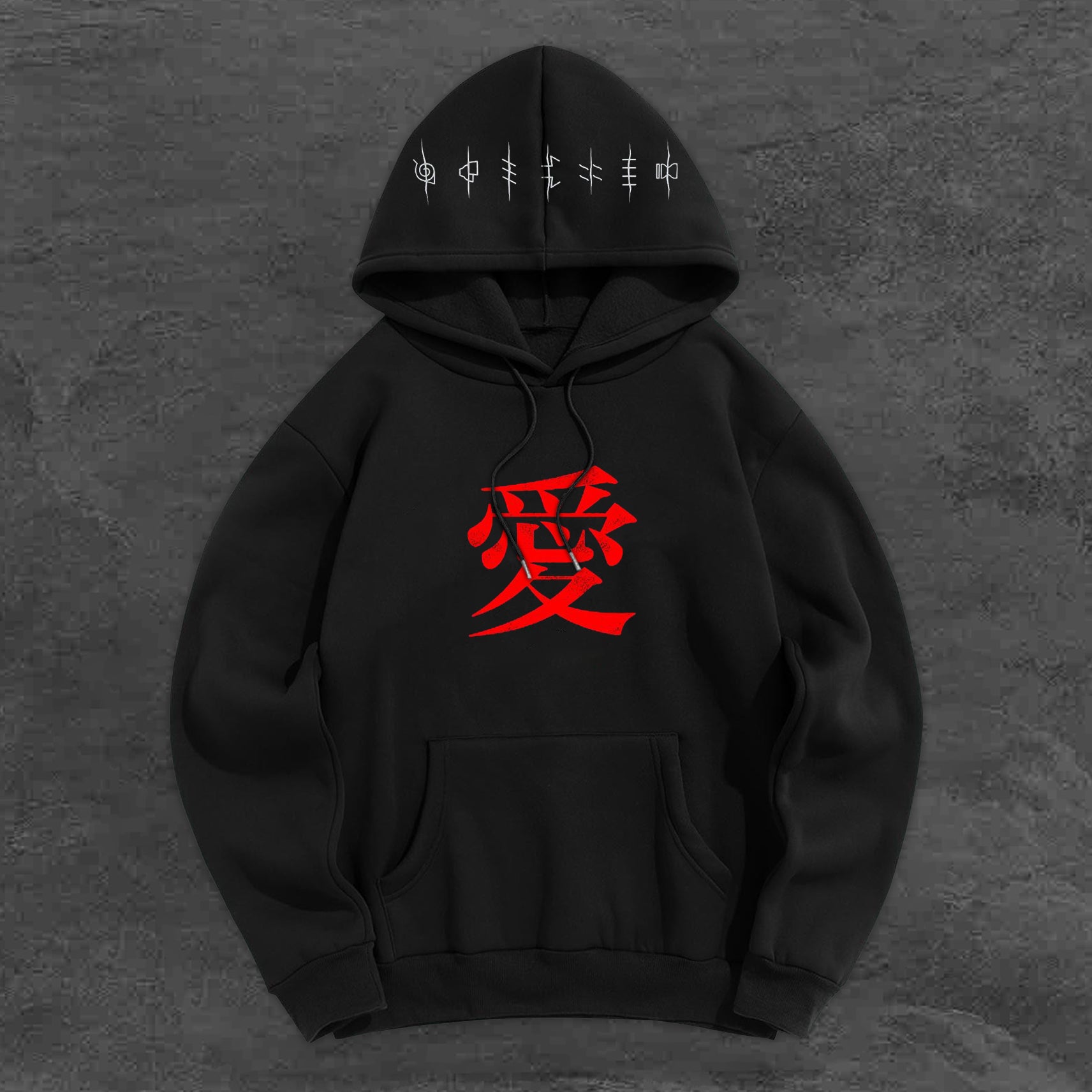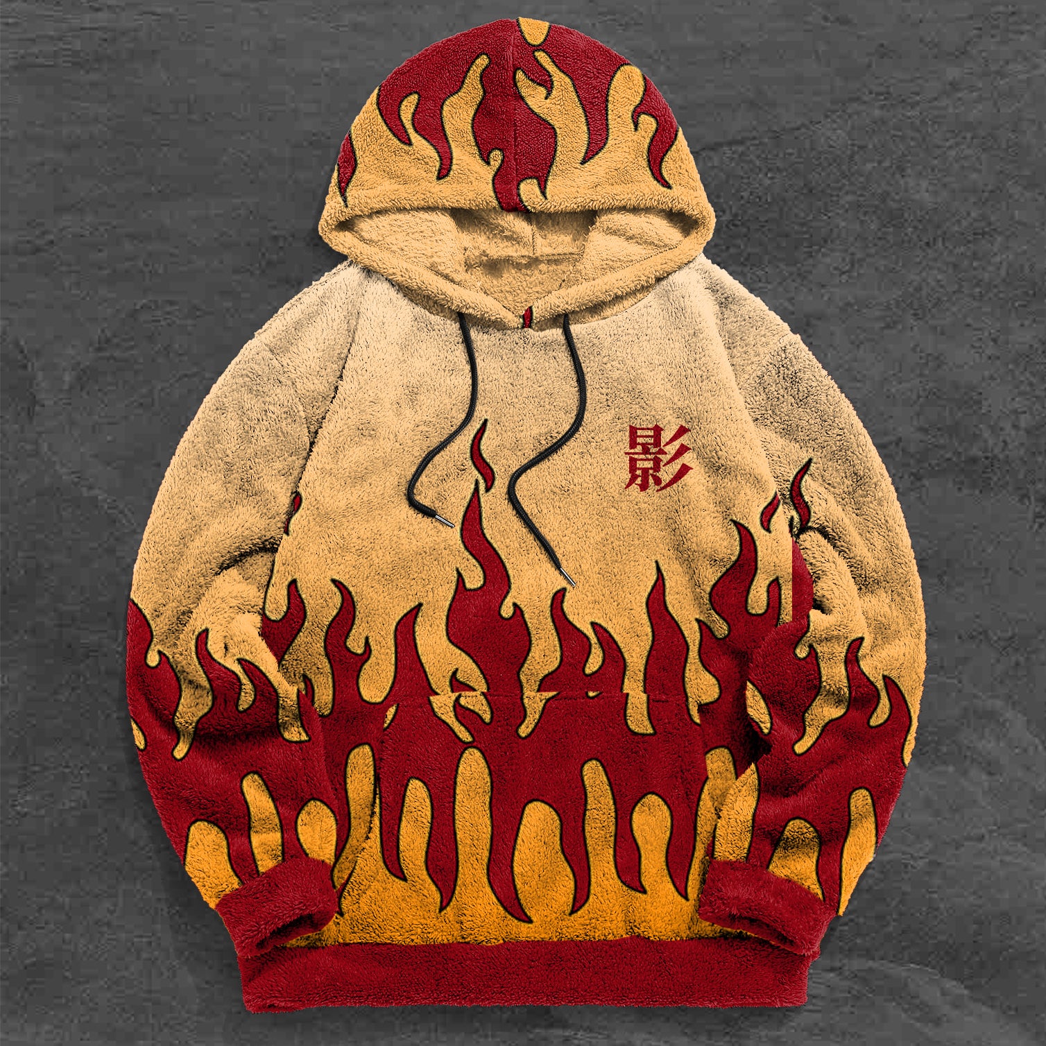 Trendy Japanese Print Plush Hoodie