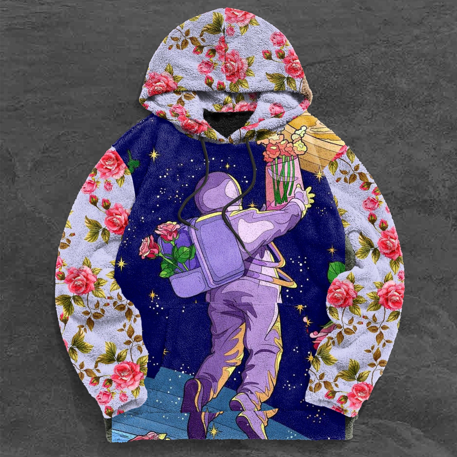 Statement Contrast Astronaut Floral Plush Hoodies