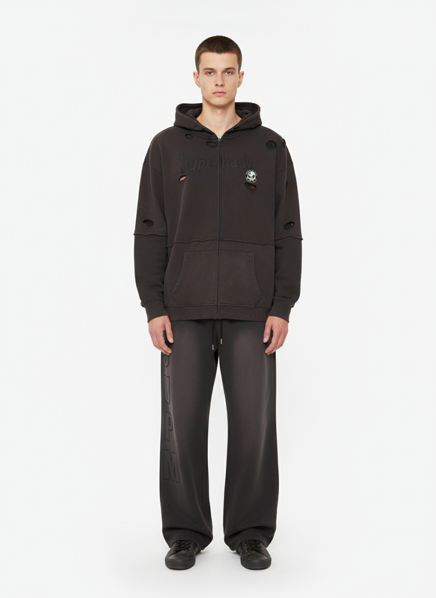 Original Washed & Ripped Skull Cardigan Cotton Hoodie Set