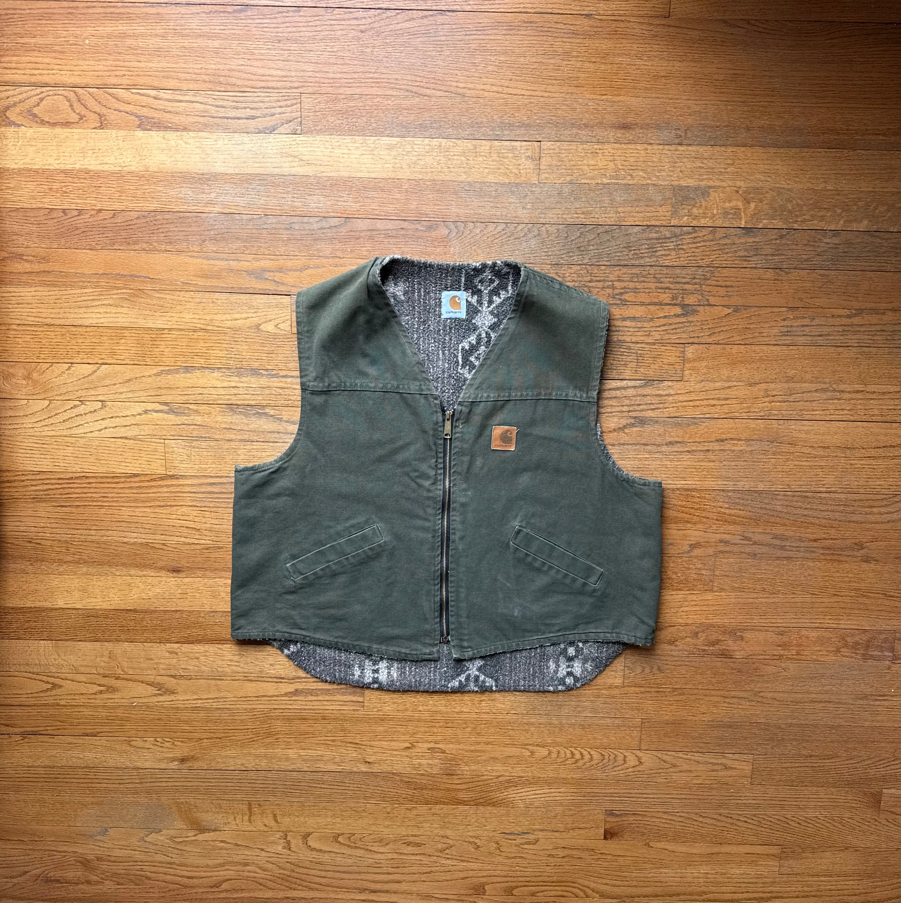 Faded Olive Green Southwest Aztec Lined Vest - XL
