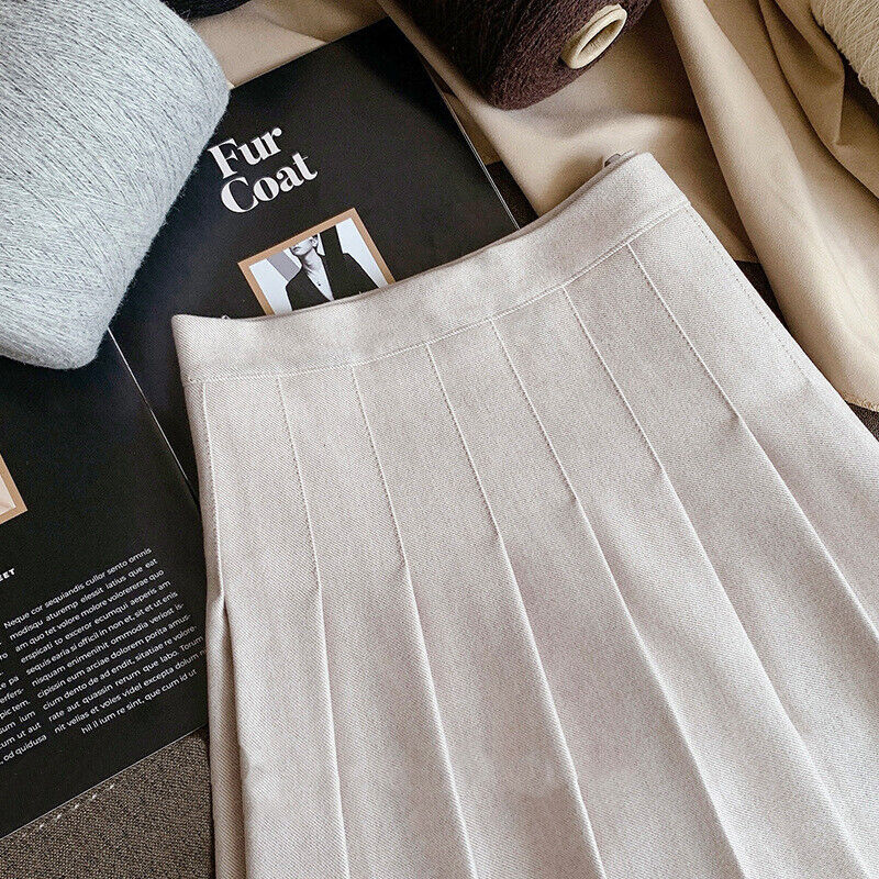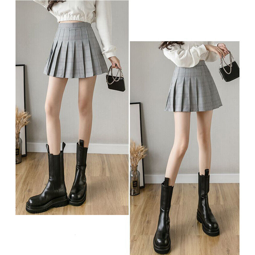 Women Lady Basic Mid Waist Mini Flared Pleated Skater Short Skirt Dress Clubwear