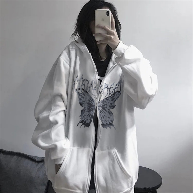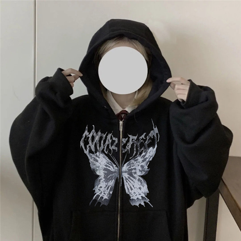 Y2k Hip Hop Zipper Butterfly Aesthetic Sweatshirts