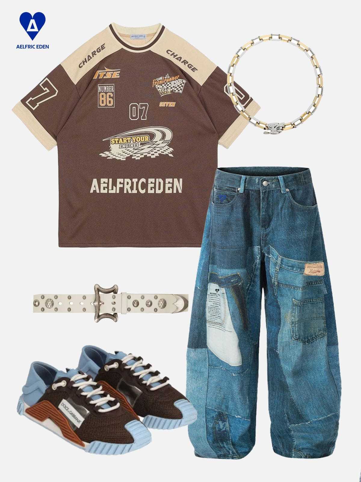 Illusion Denim Graphic Baggy Barrel Jeans