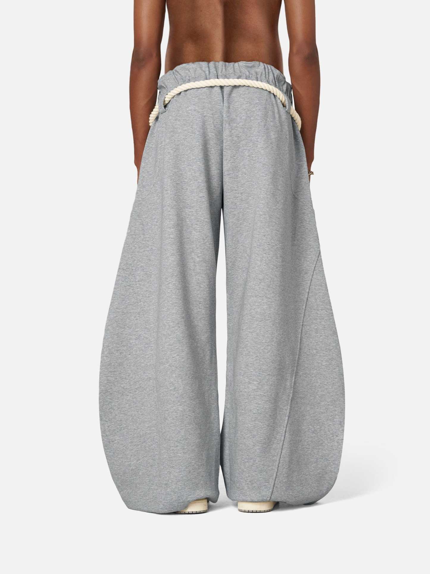 These Barrel Sweatpants blend laid-back ease with a unique touch. The wide-leg fit and elasticized waistband ensure all-day comfort and freedom of movement, while the distinctive rope drawstring adds a subtle contrast to the soft fabric. Designed to complement every height, they create a relaxed stacked effect for taller frames, a clean streetwear vibe for mid-heights, and a naturally draped, elongating look for shorter wearers. One pair, endless styles—your height, your vibe!