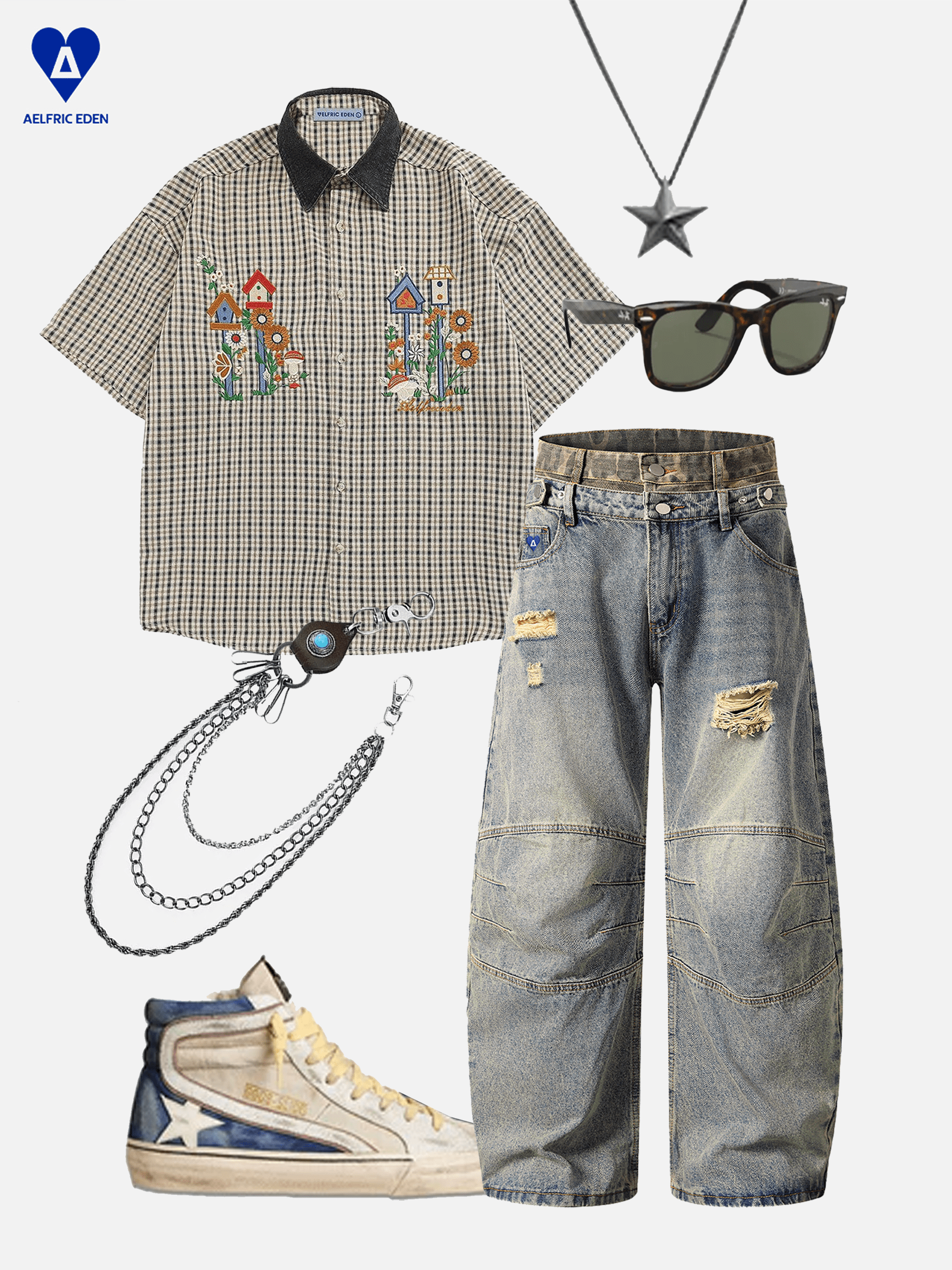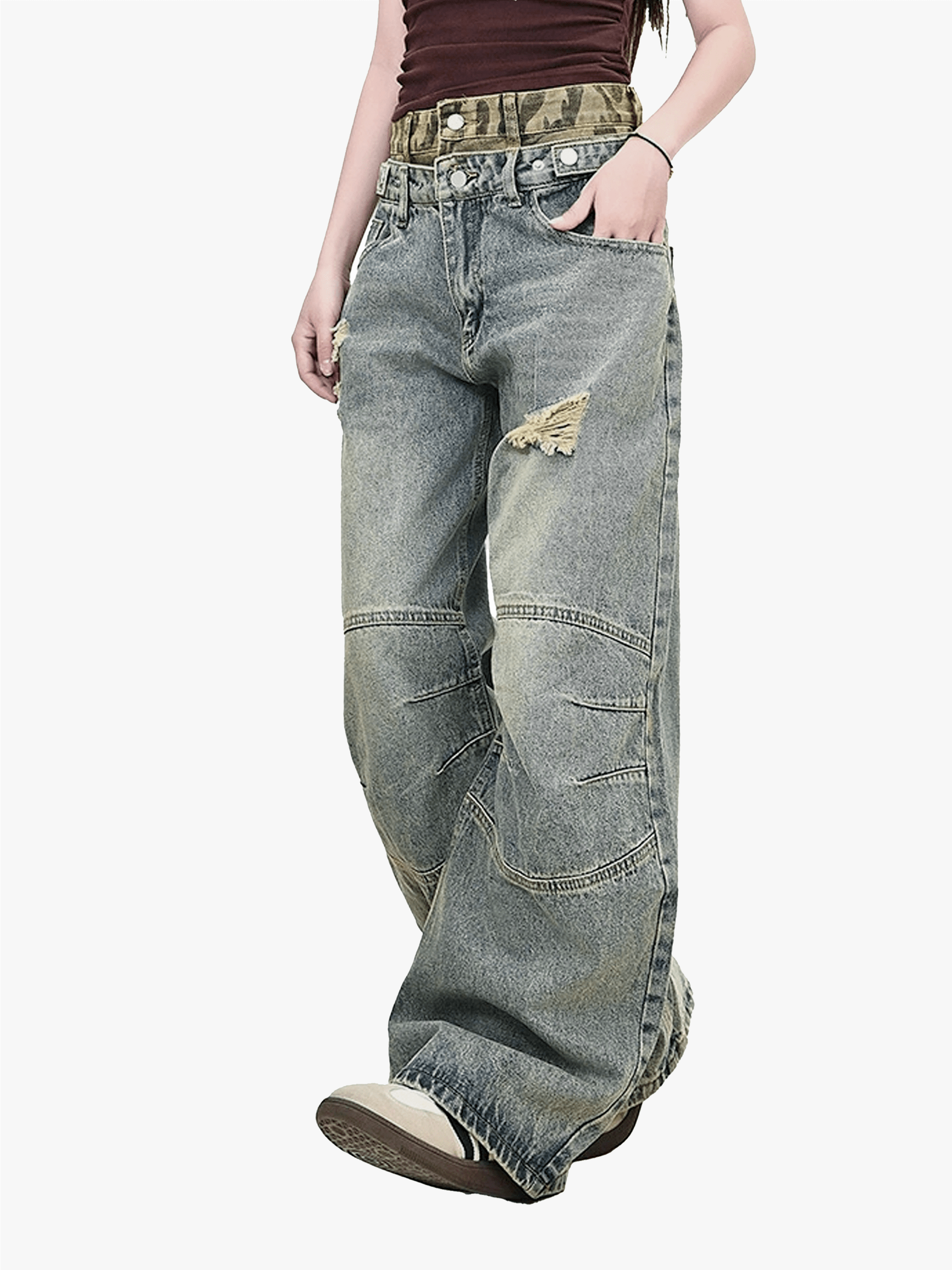 Double Waist Wrinkle Baggy Barrel Jeans