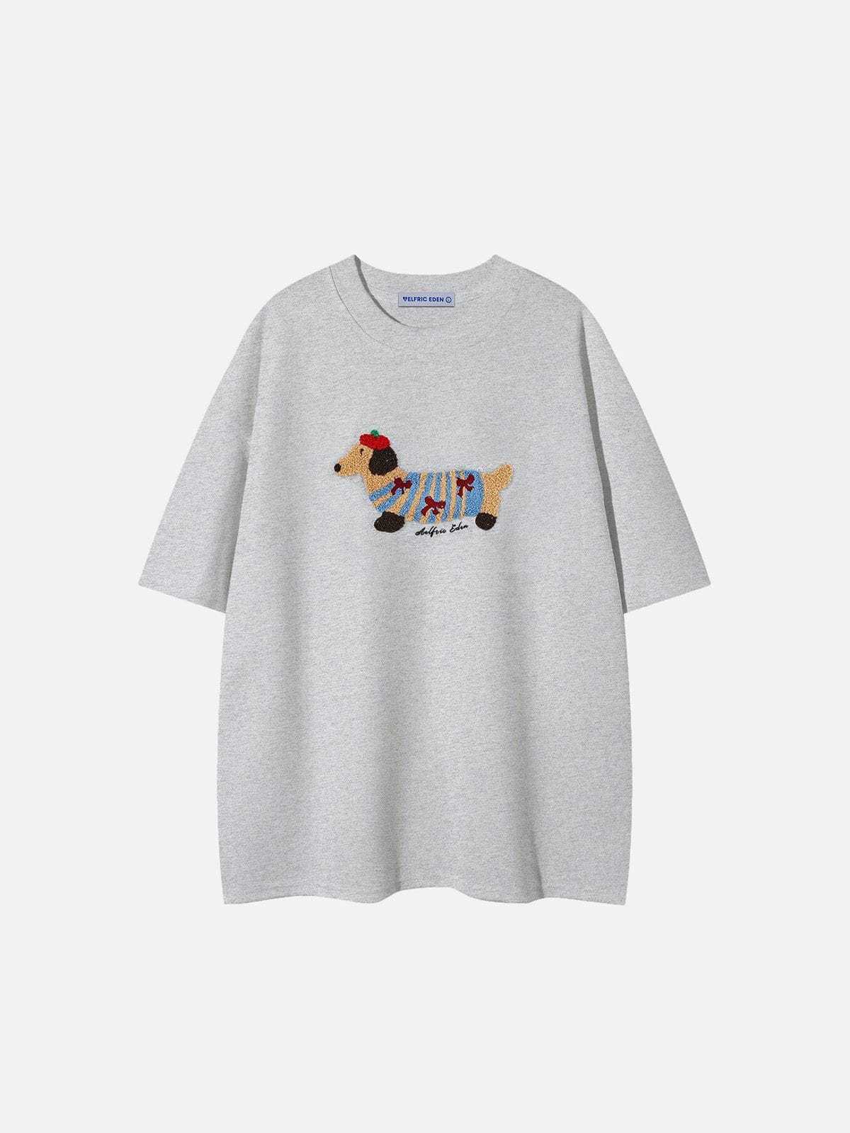 Cartoon Dog Embroidery Tee
