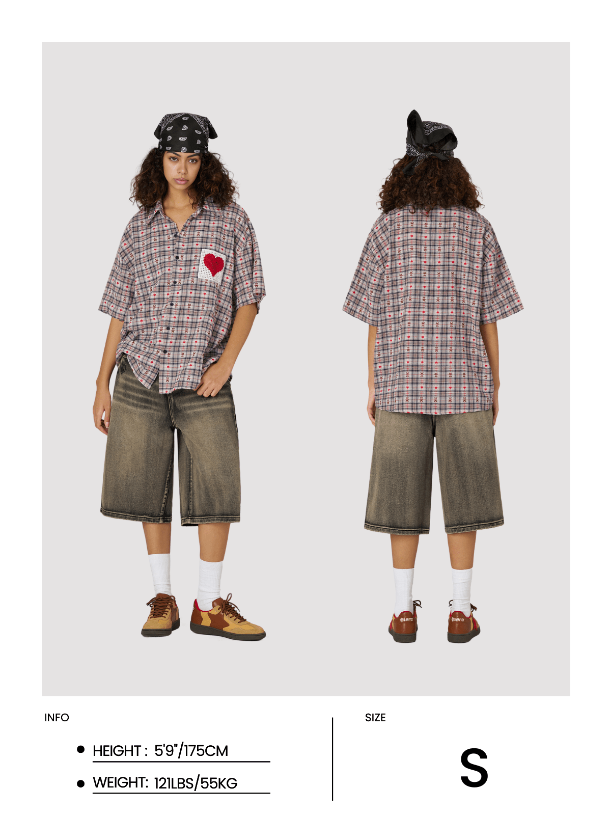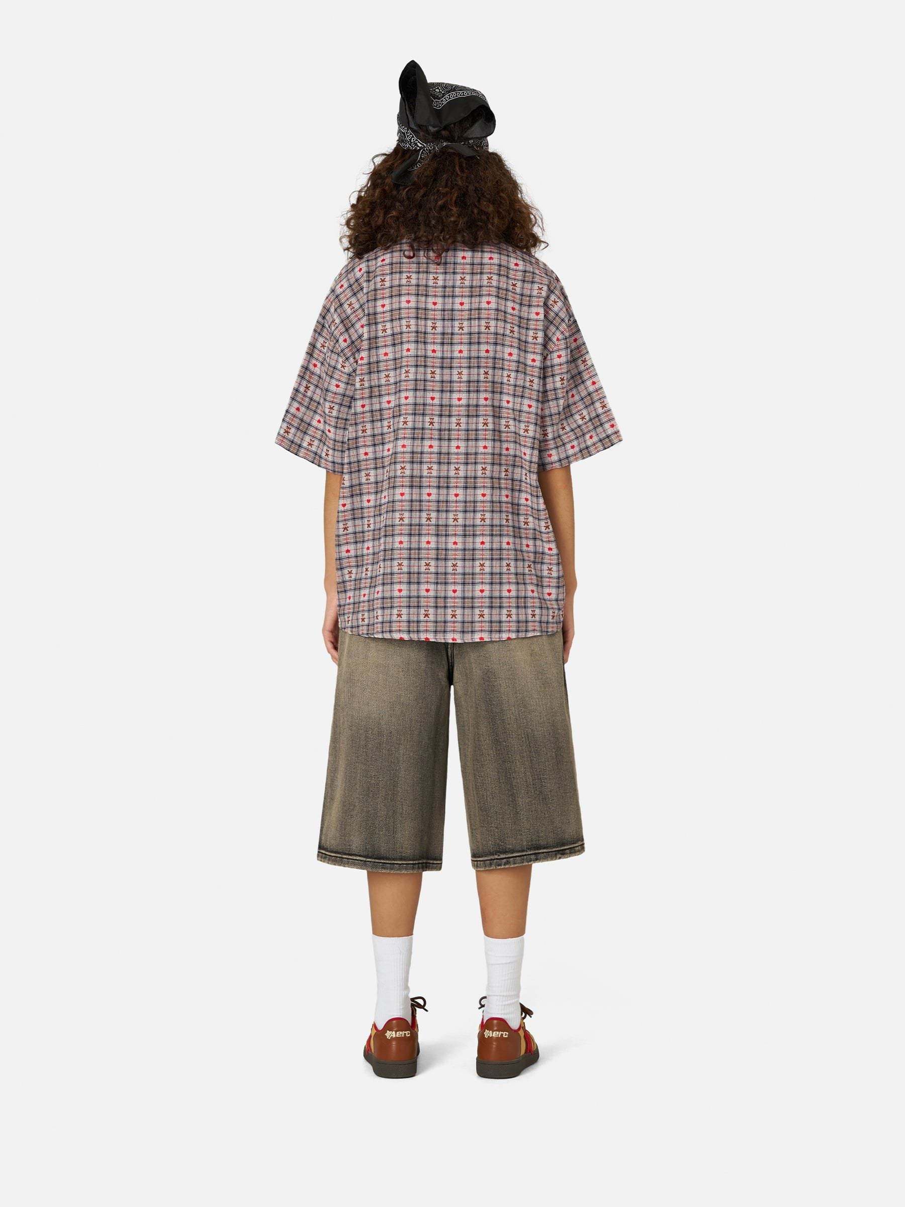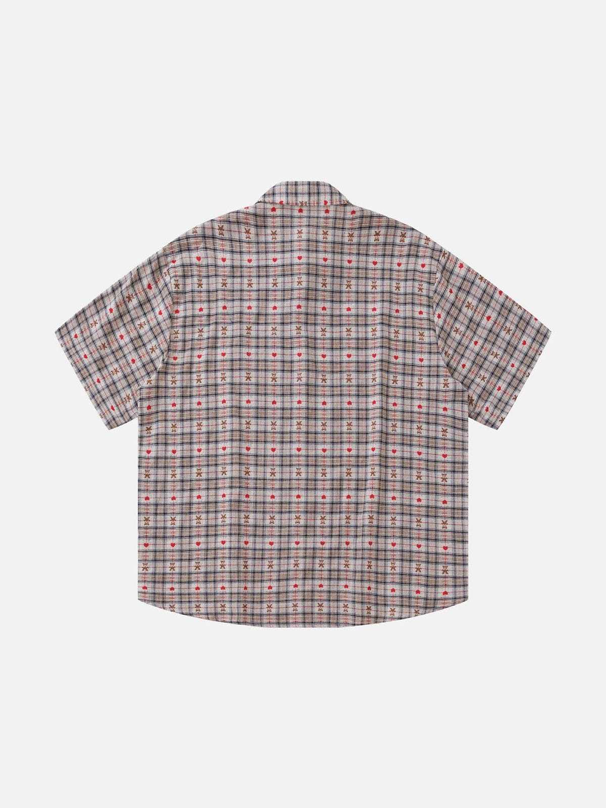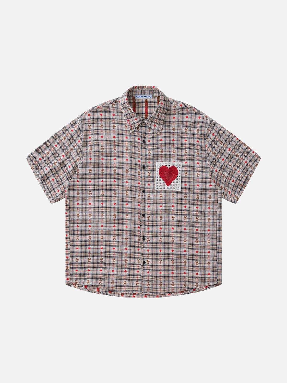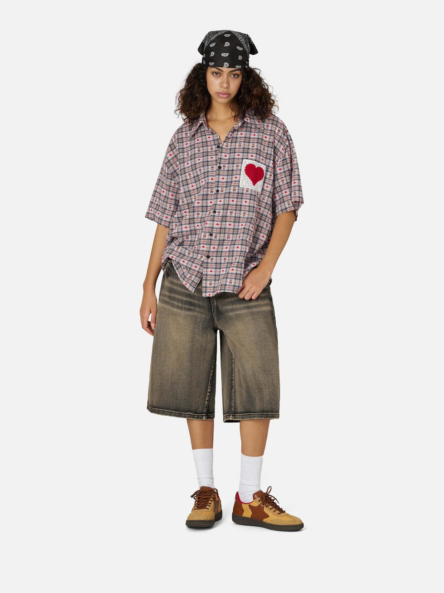 Crochet Heart Pocket Plaid Shirt