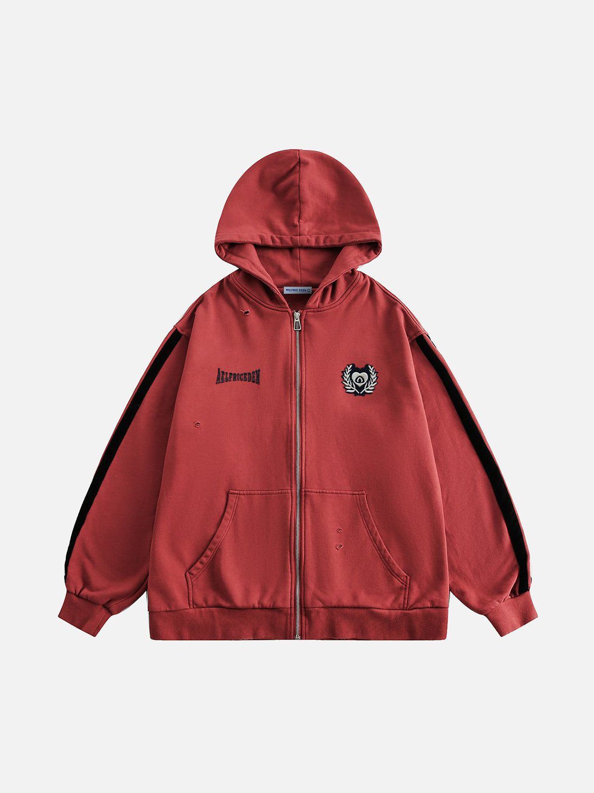 Distressed Embroidery Zip Up Hoodie