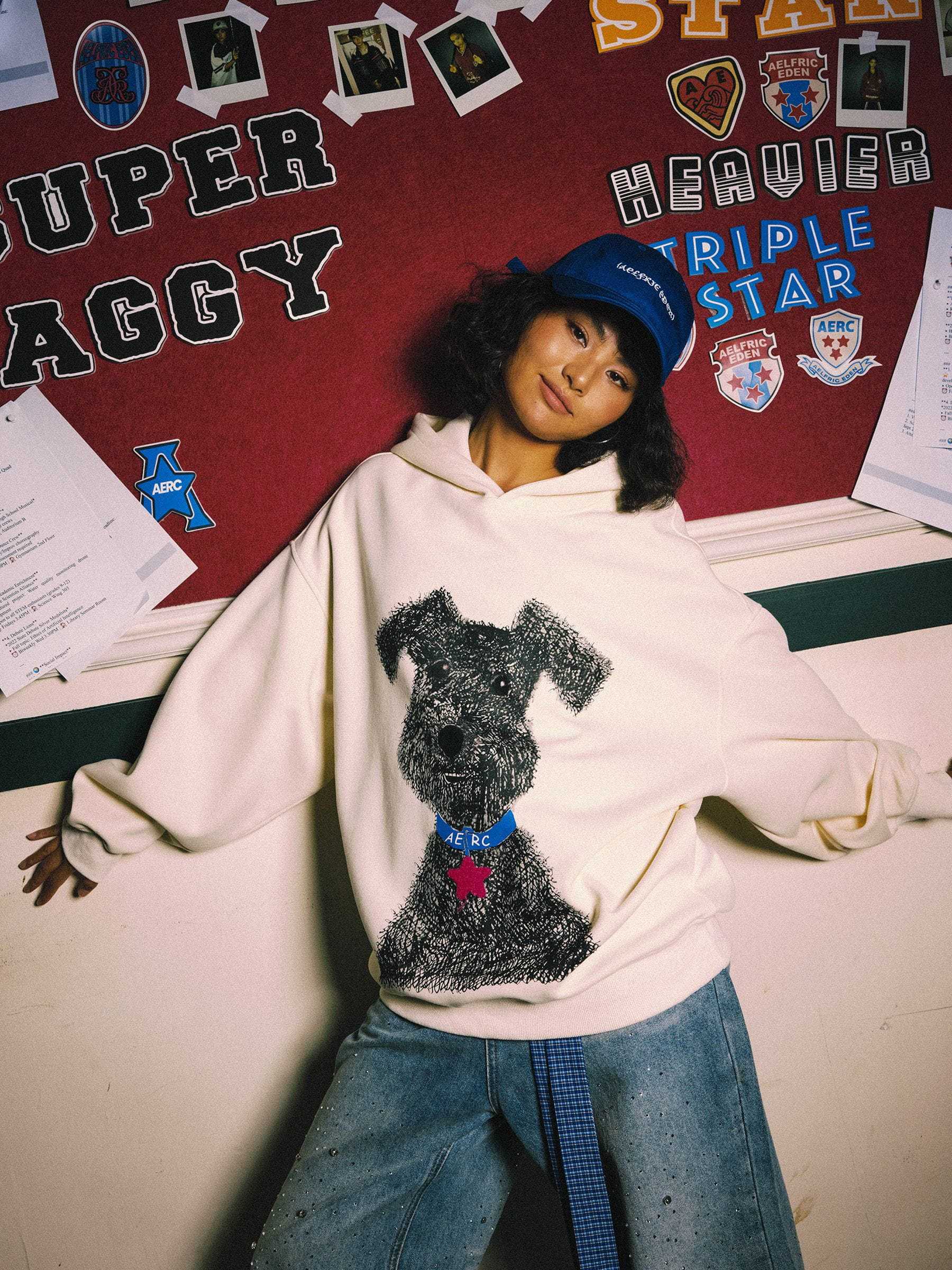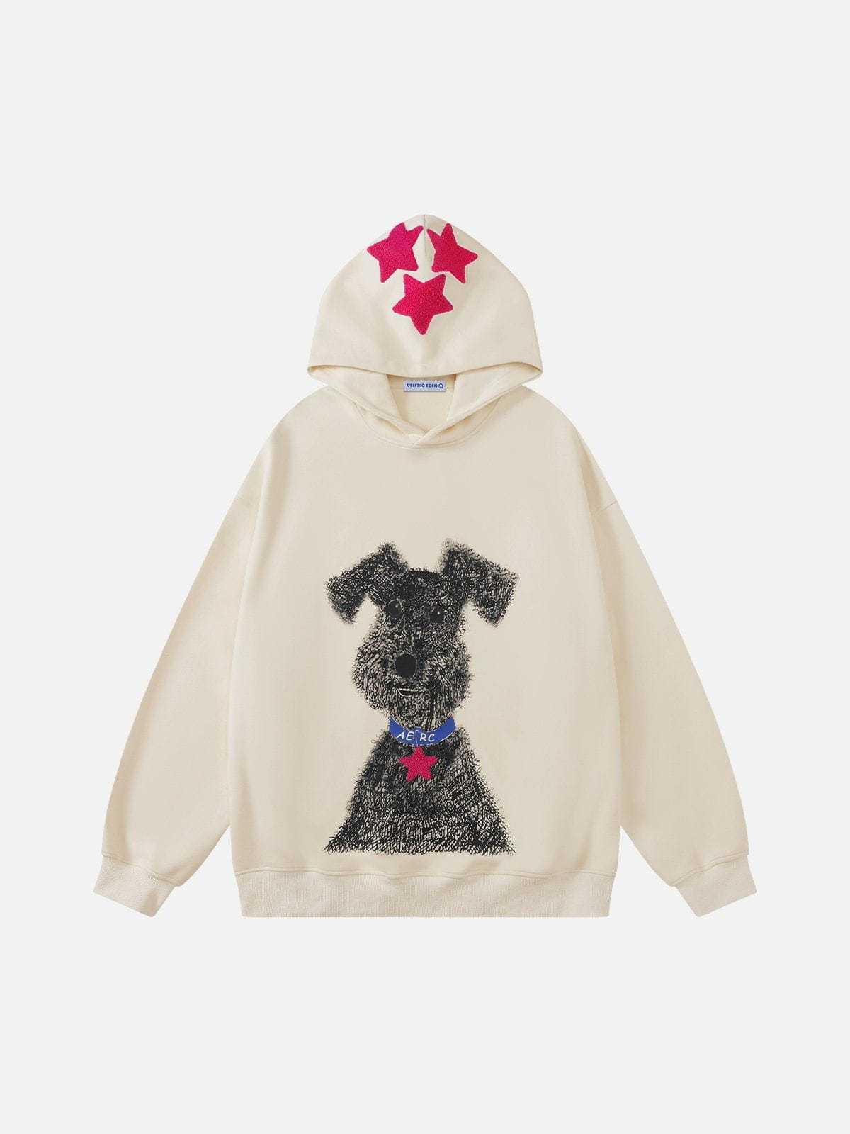 Stay cozy and playful with this adorable hoodie featuring a charming dog print on the front. The hood is adorned with Eden Star’s signature star patch embroidery, adding a touch of uniqueness to the design. Perfect for casual days with a fun, stylish twist!