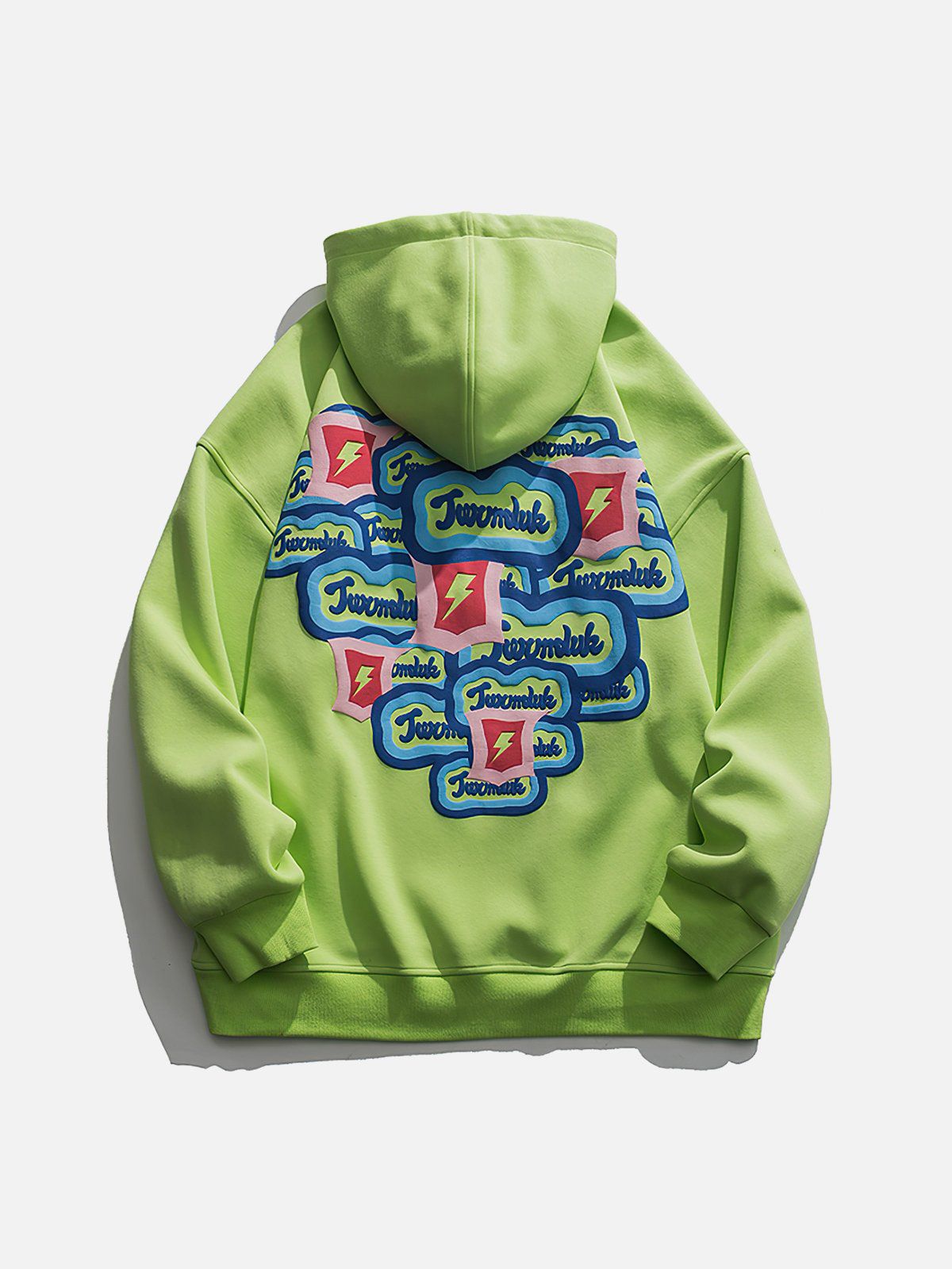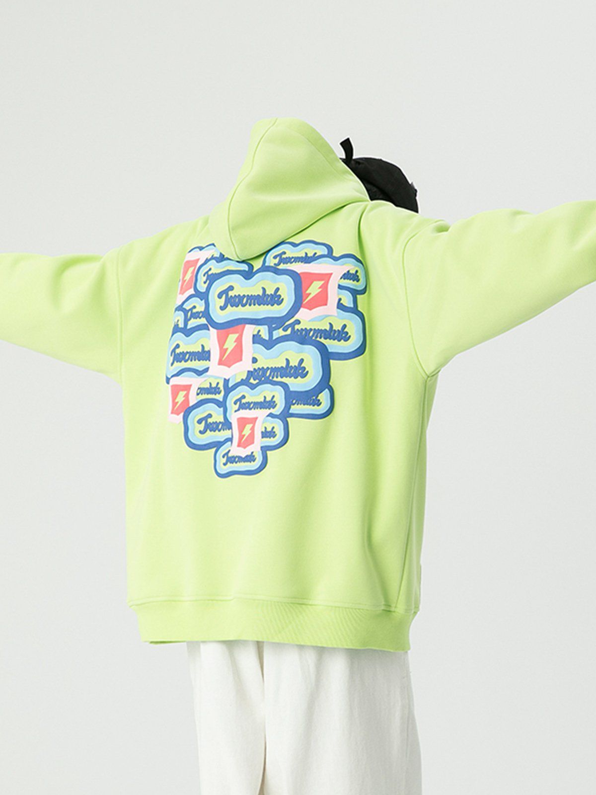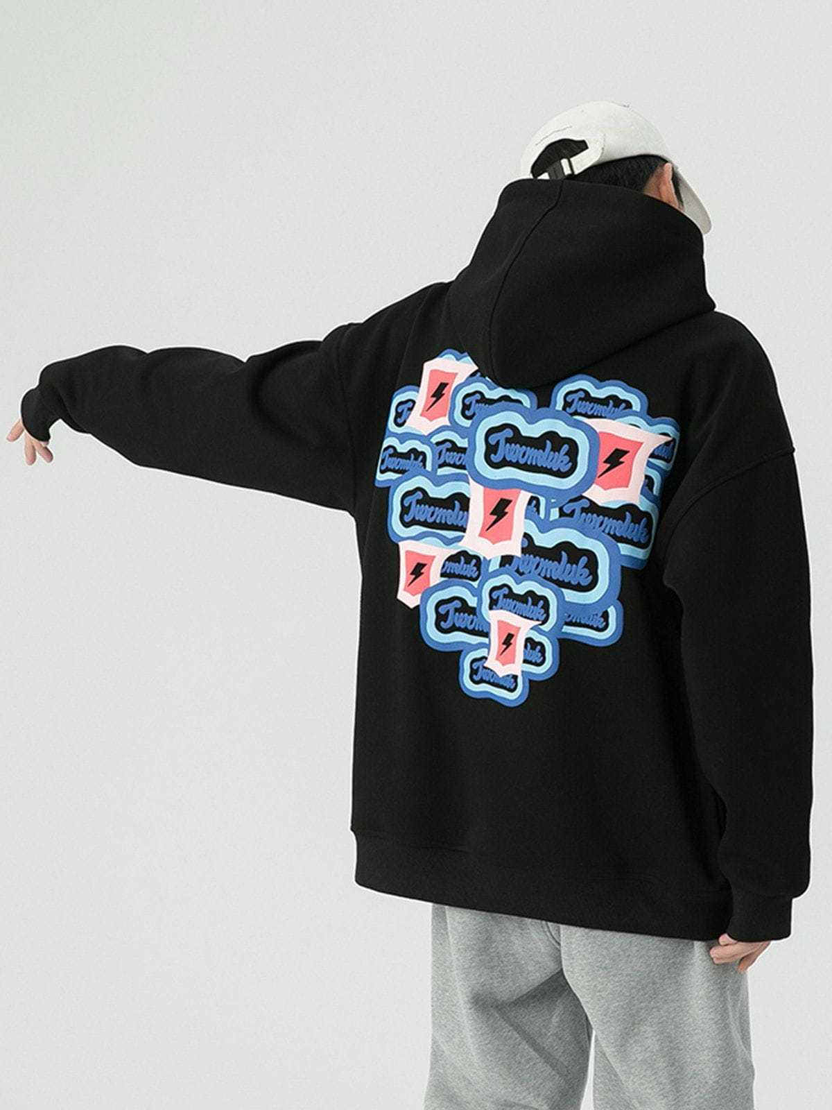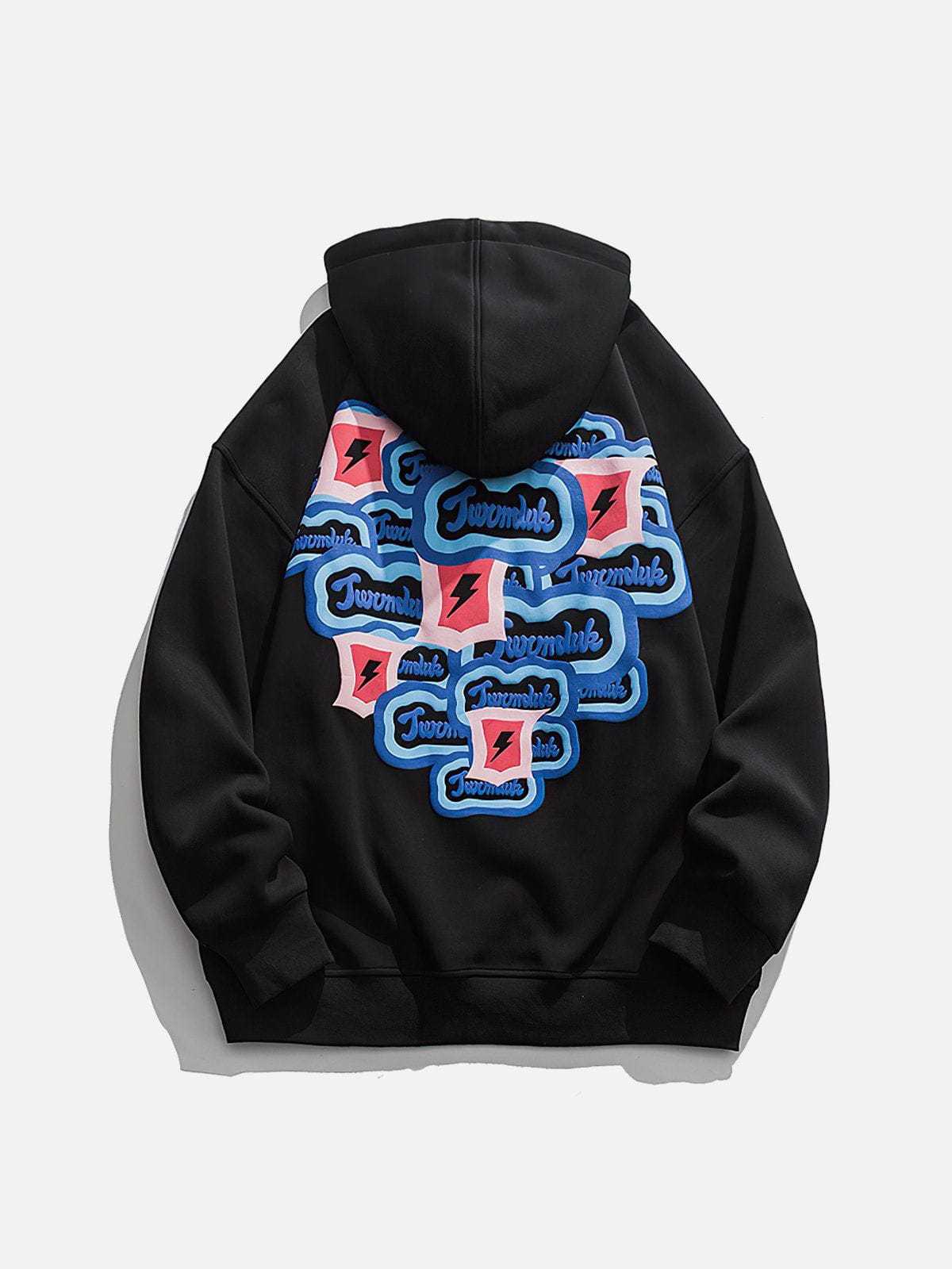 The back of the hoodie has multiple identical monogram prints and lightning bolts overlapping to form a heart shape, which adds a sense of stylish and design. Made of soft material, it will keep you comfortable and breathable for all-day wear.