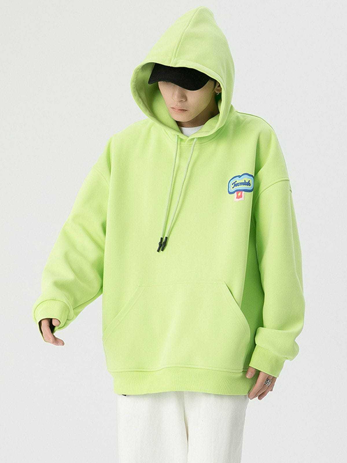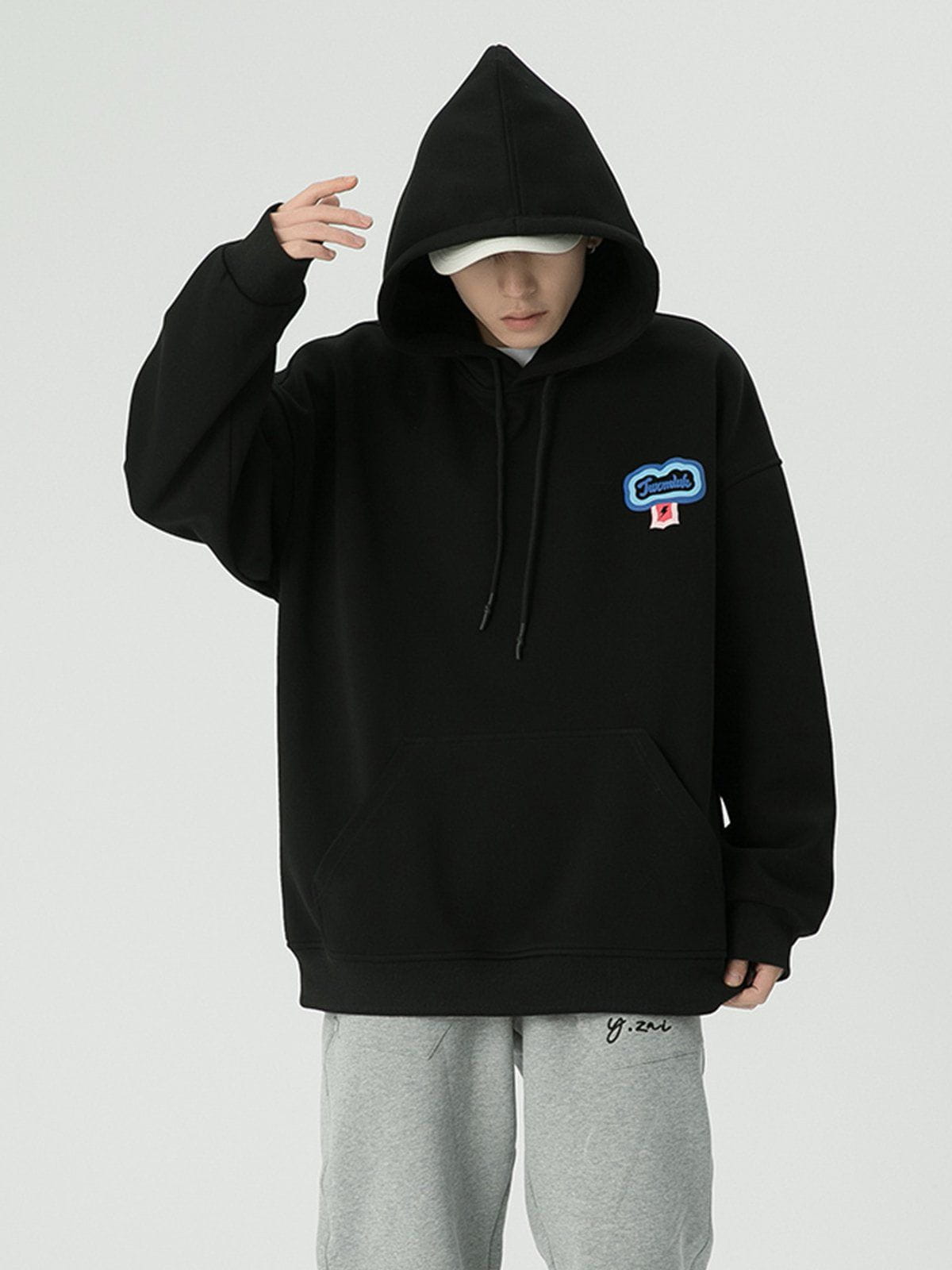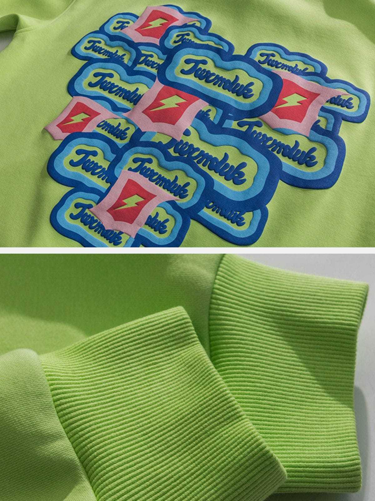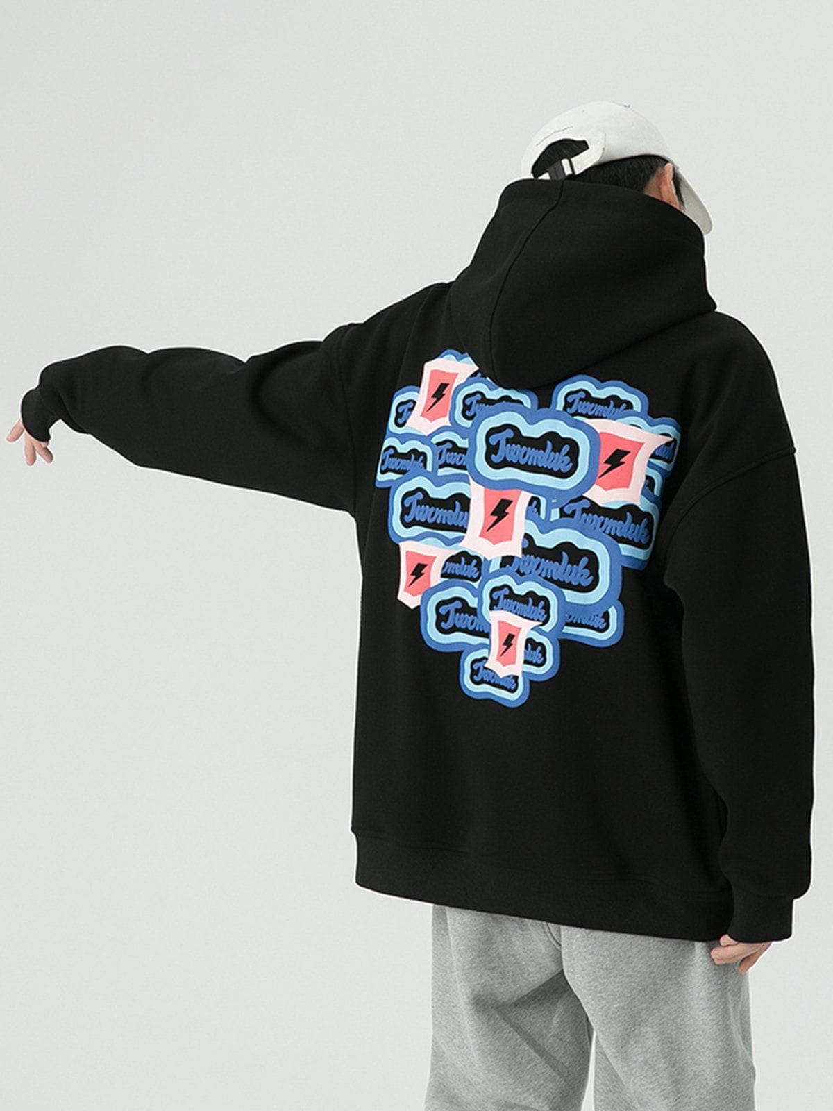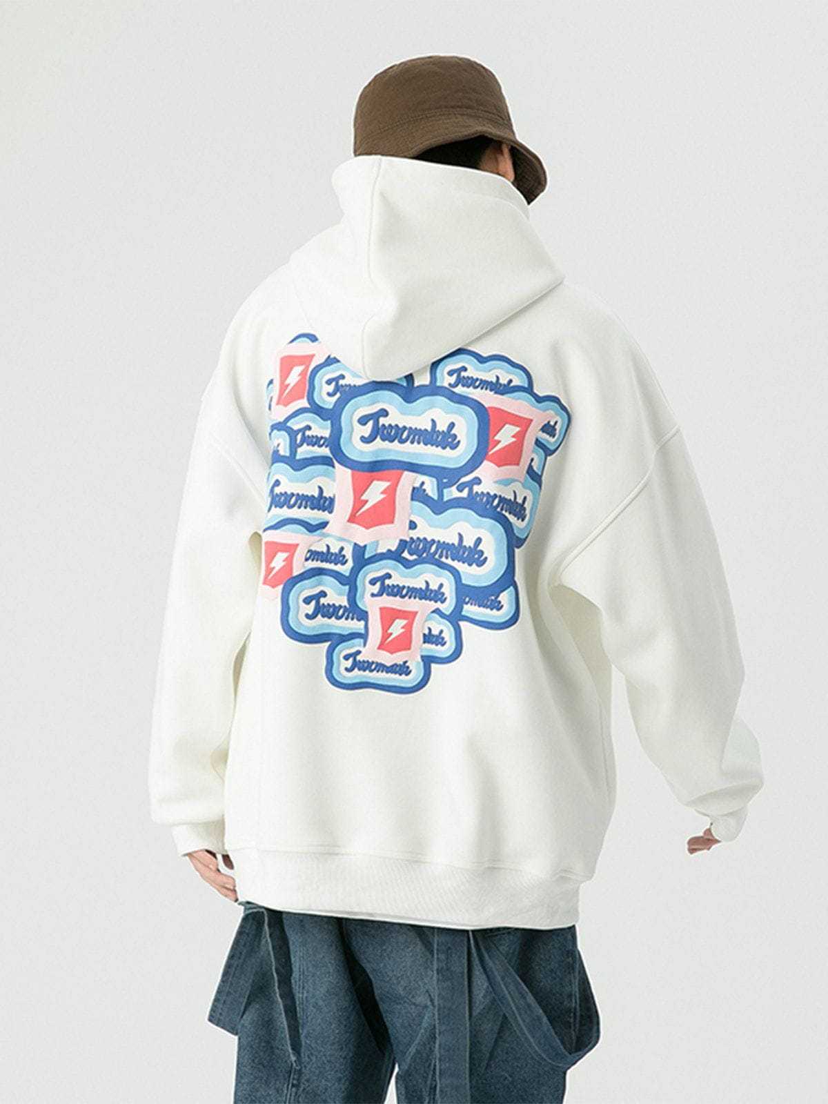 The back of the hoodie has multiple identical monogram prints and lightning bolts overlapping to form a heart shape, which adds a sense of stylish and design. Made of soft material, it will keep you comfortable and breathable for all-day wear.