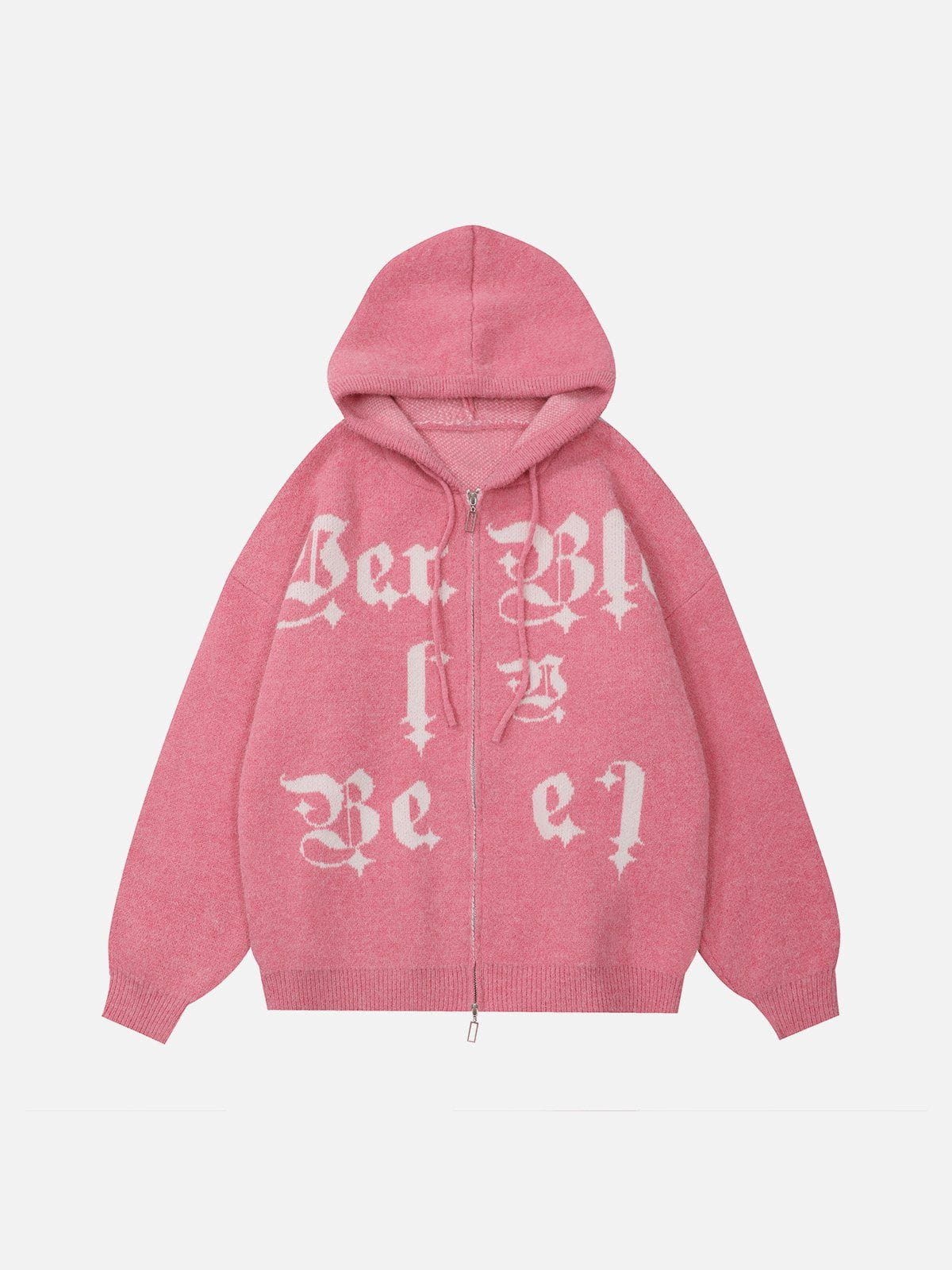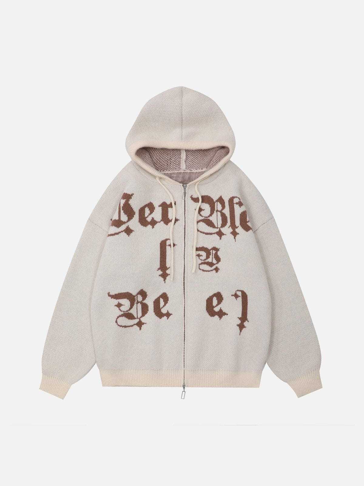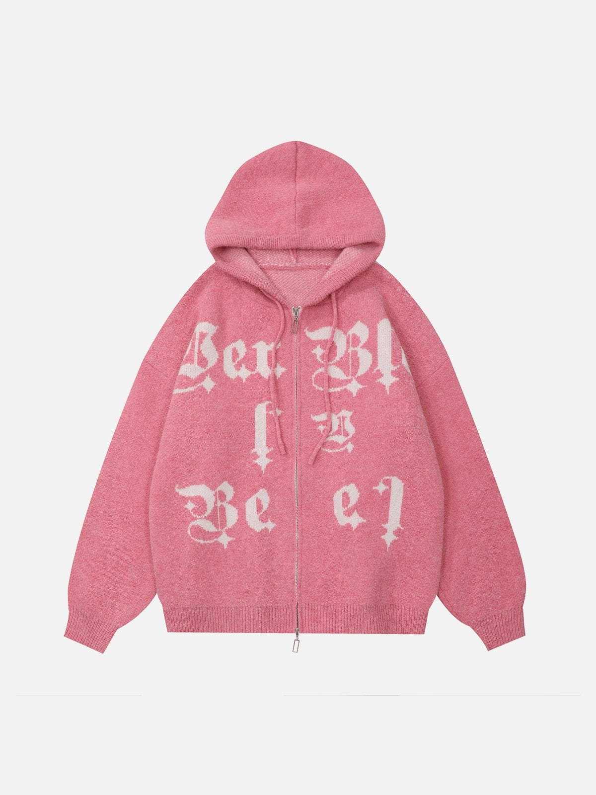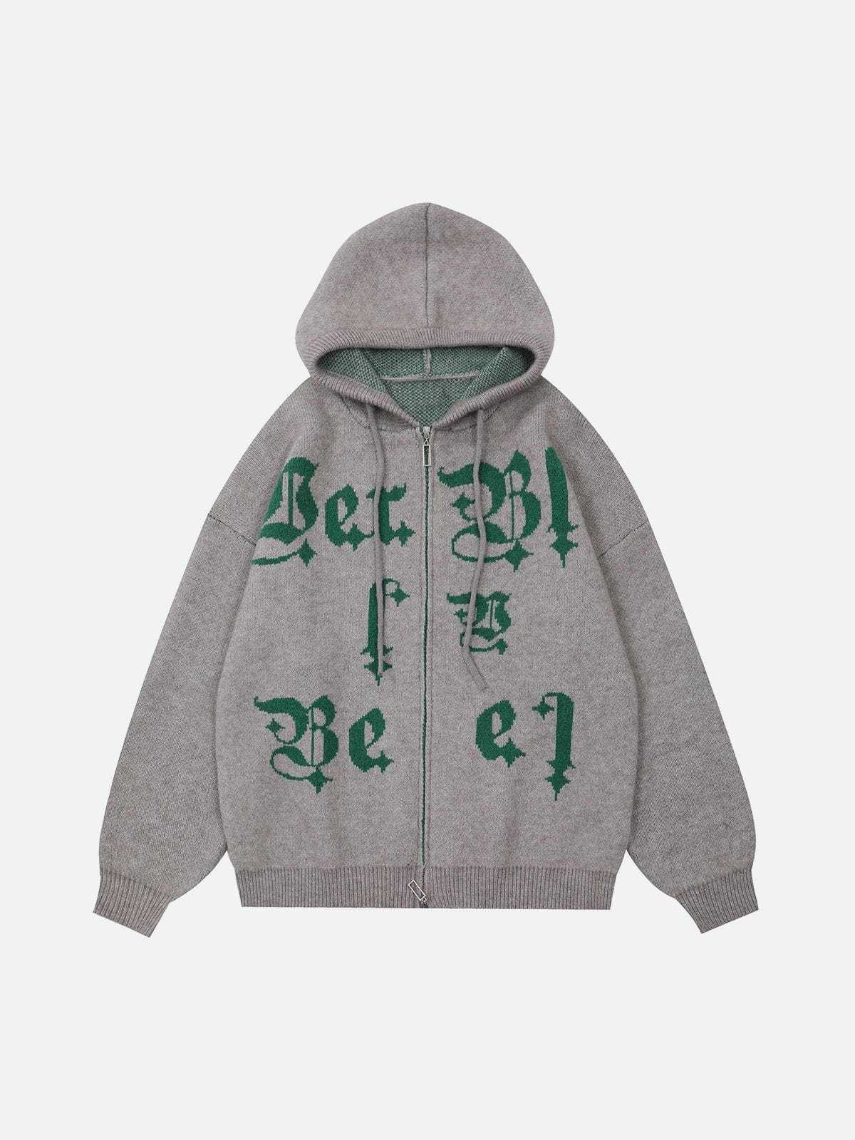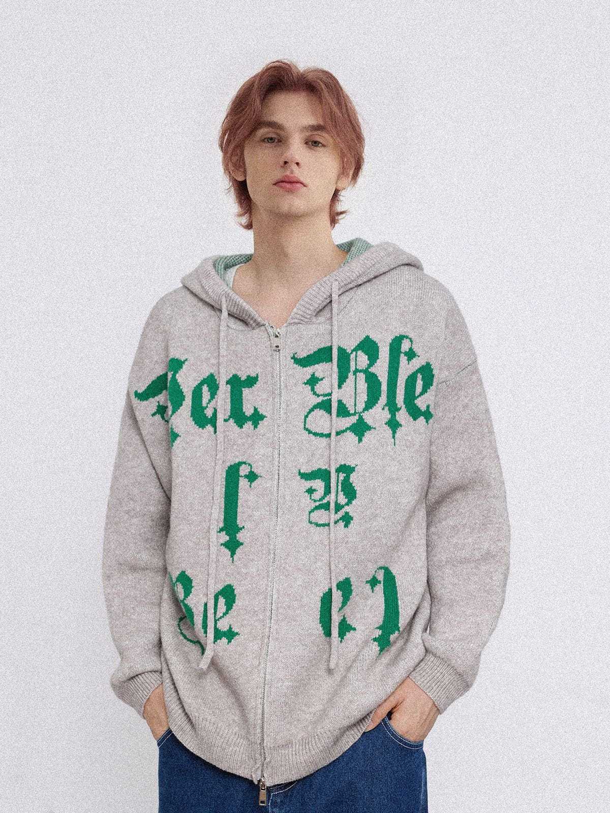 The front of the hoodie showcases a striking embroidery of letters, and what sets this hoodie apart are the two zippers. This innovative design allows for customizable ventilation and a dynamic look. You can adjust the zippers to create different styles.