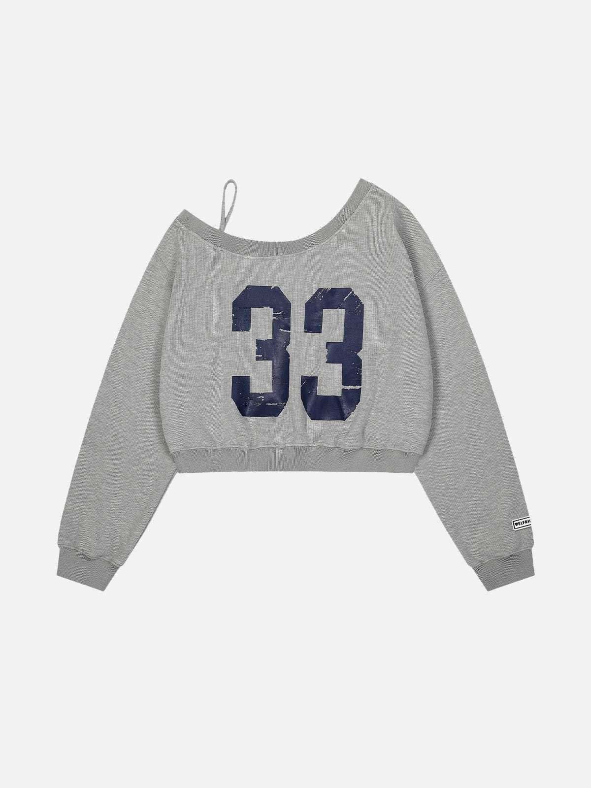 Number Print Cropped Sweatshirt