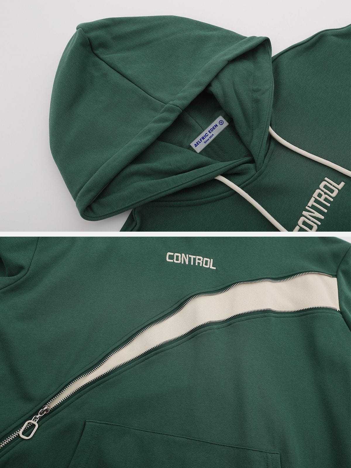 Contrast Patchwork Zip-up Leisure Hoodie