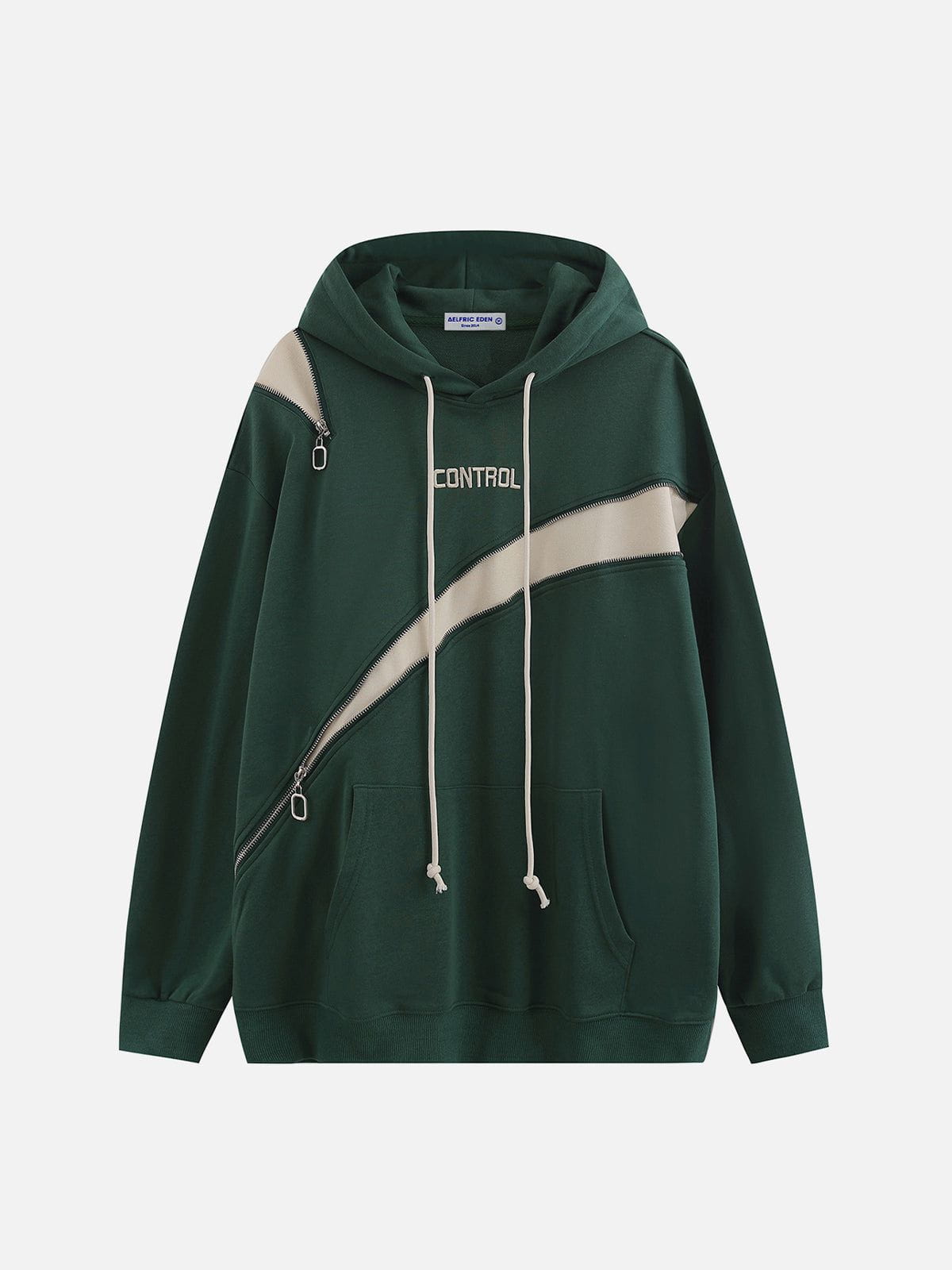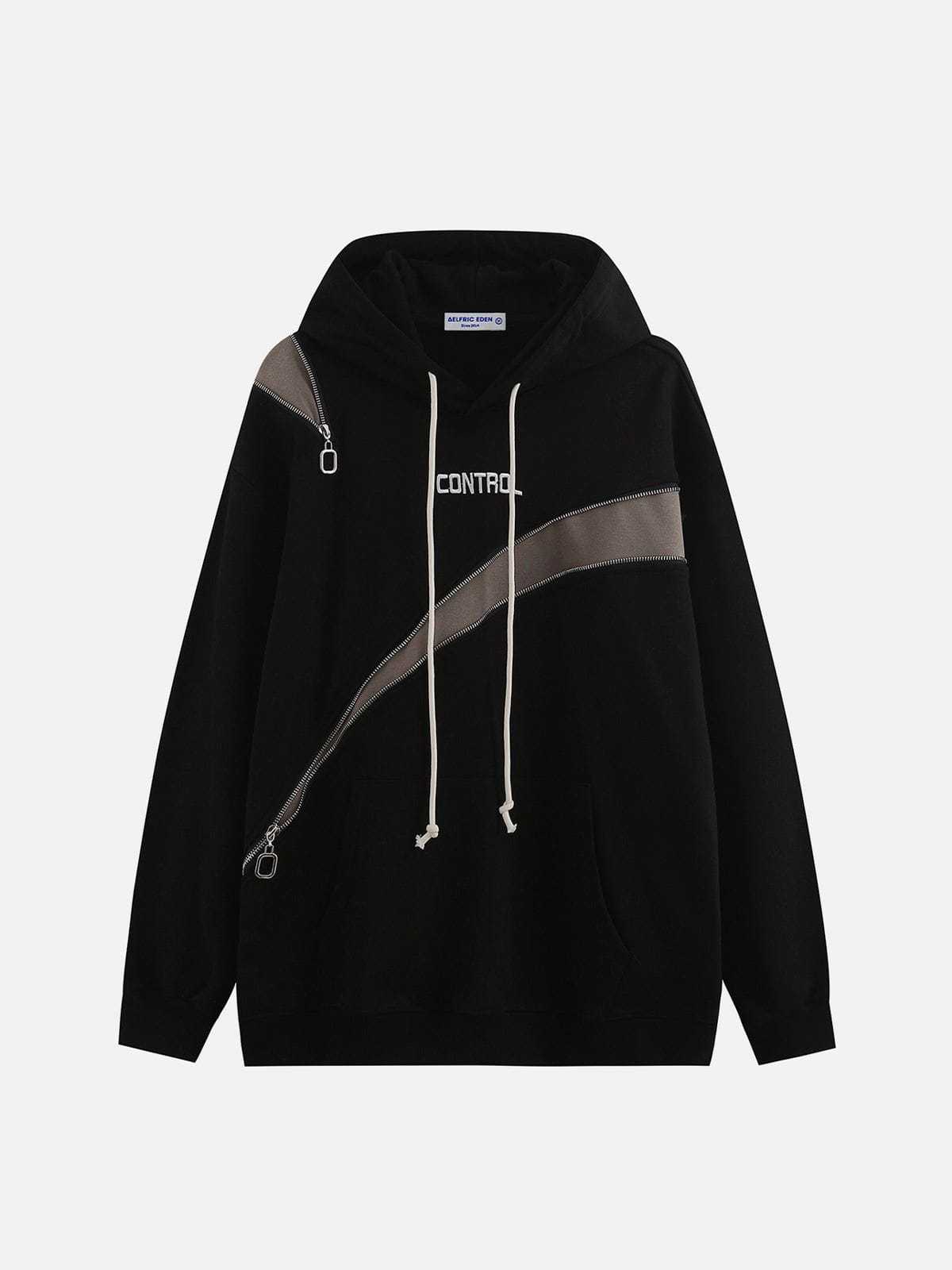 This hoodie is a trendy and modern garment that adds a touch of urban flair to your wardrobe. It features a unique patchwork design with contrasting colors, creating a simple yet striking look. The front zipper detail adds a touch of avant-garde to the hoodie.