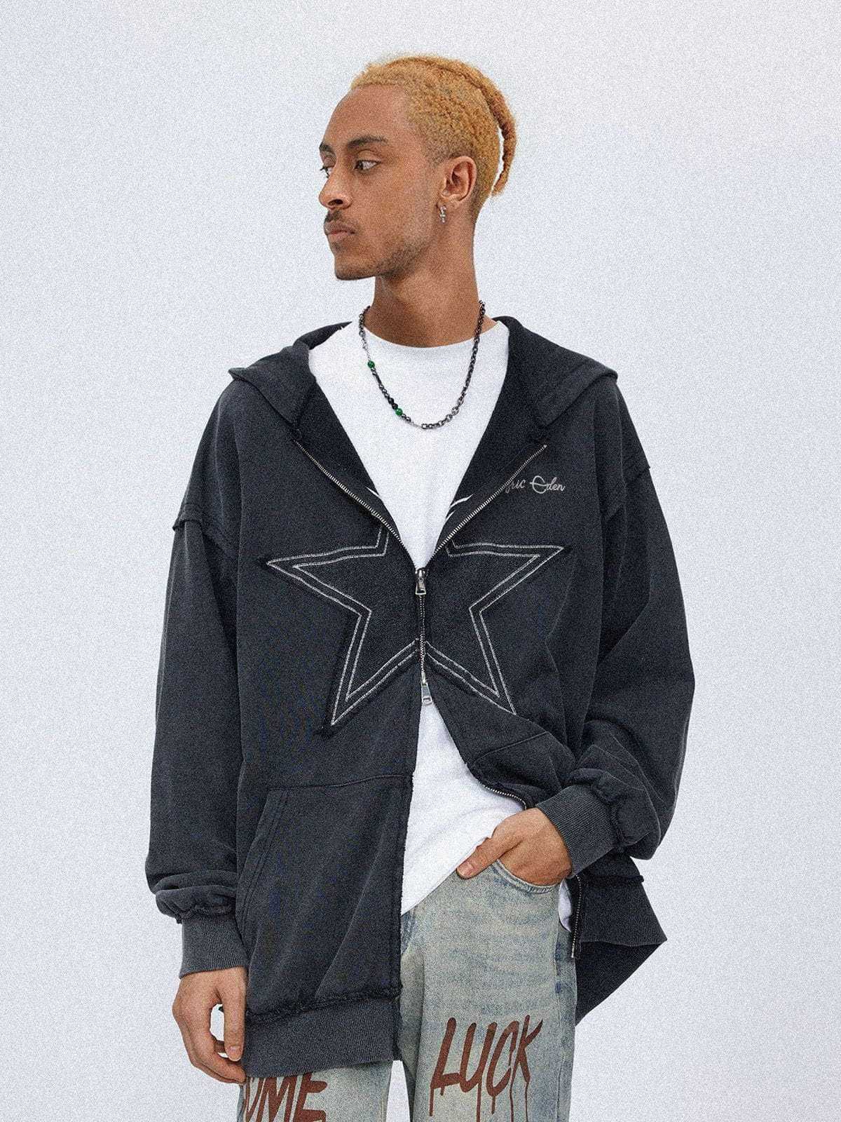 Star Applique Zip Up Hoodie