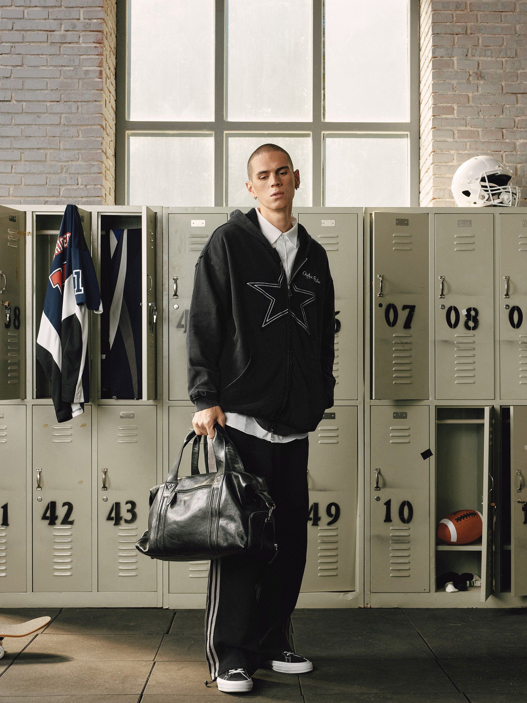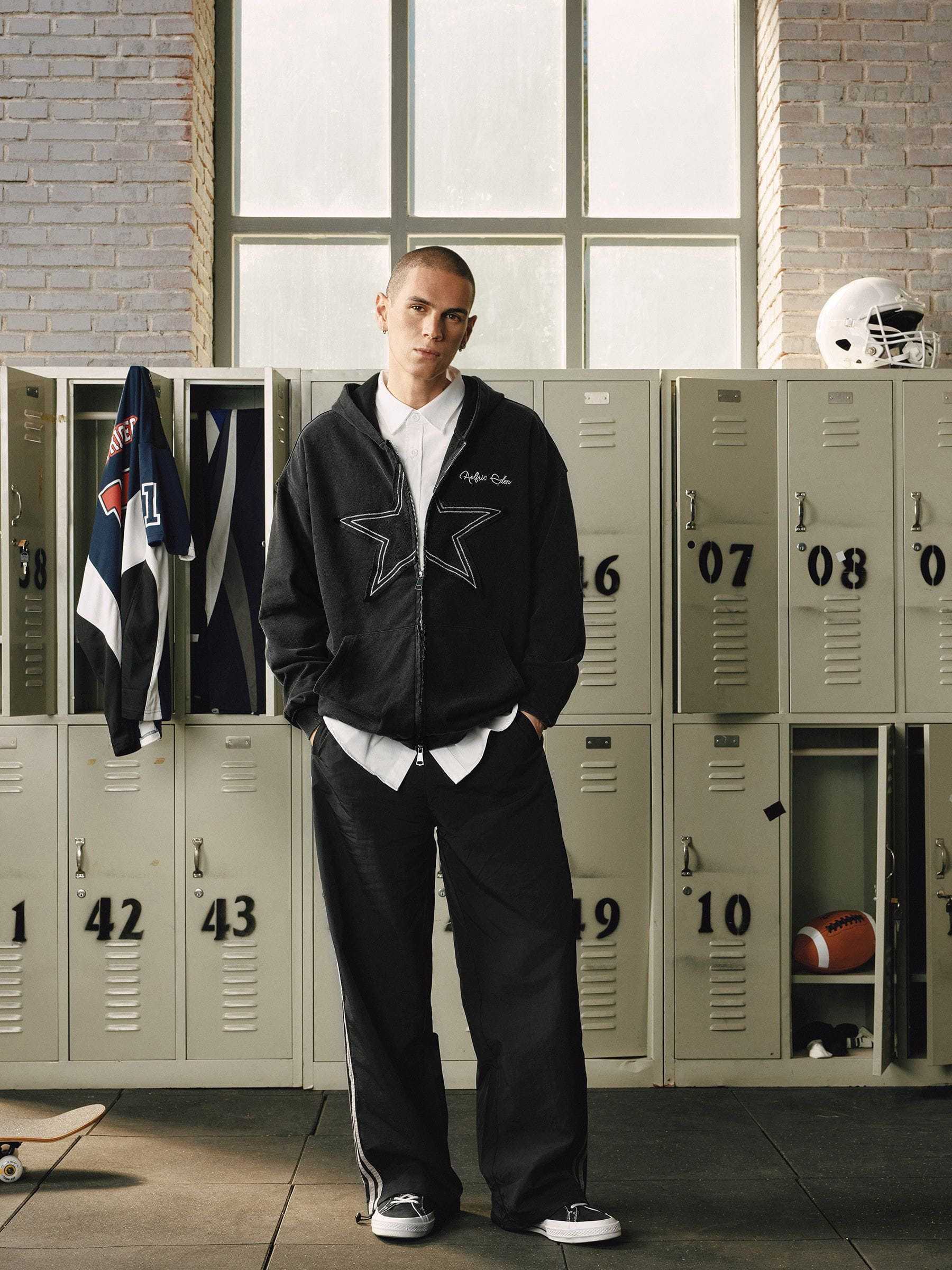 Clothing details: Star, Washed, Dual-zipper.