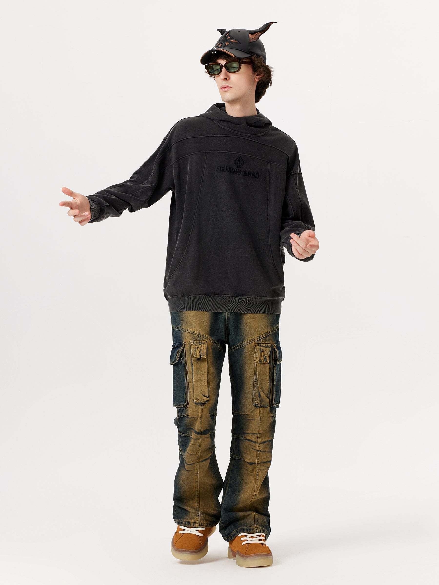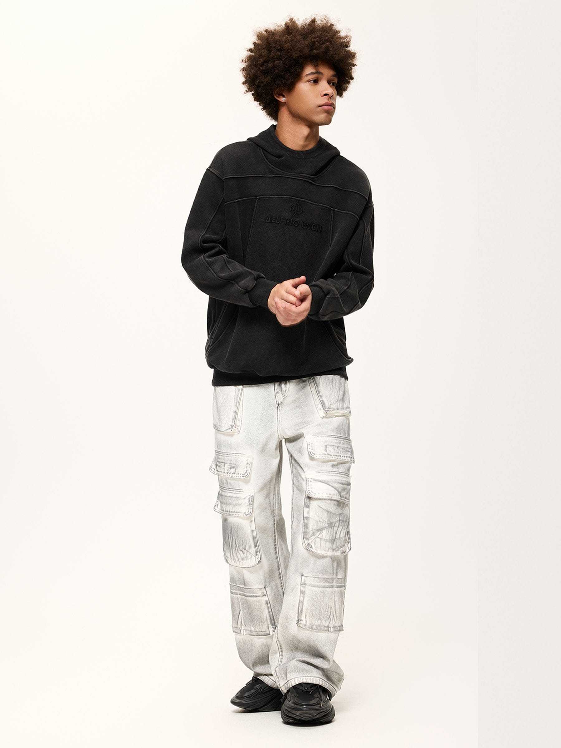 The hoodie features an eye-catching patchwork design that gives it a modern and urban edge. Proudly displayed on the front is our store's logo, symbolizing our commitment to quality and style.