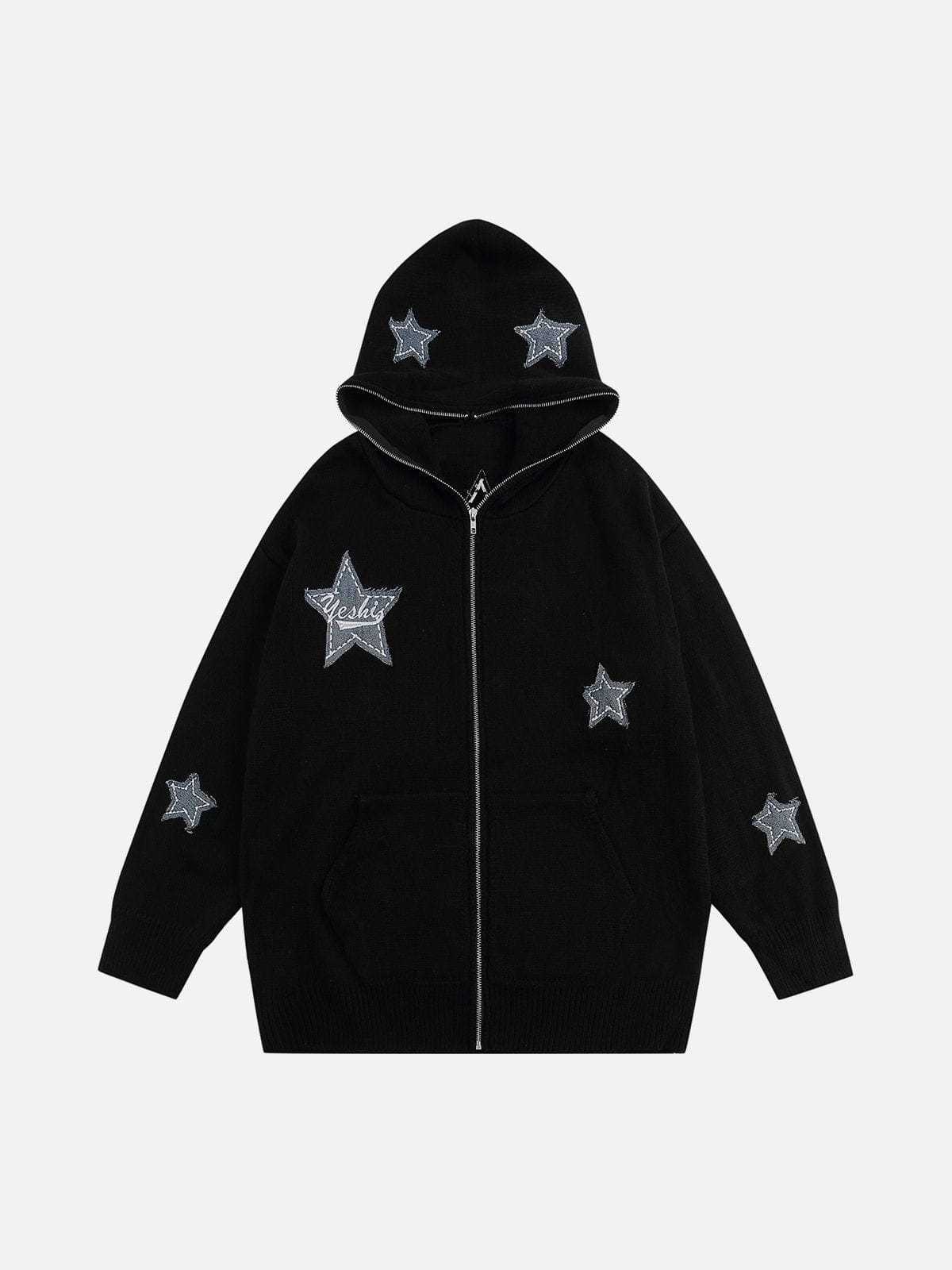 Star Embroidery Patchwork Hoodie