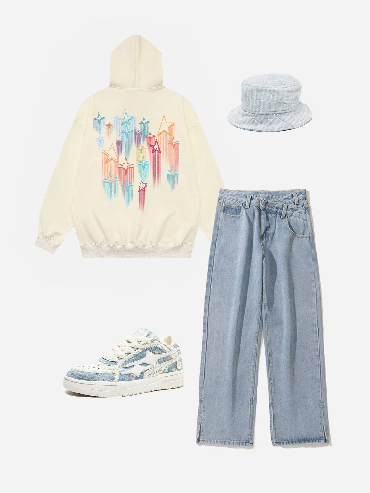 Star Embroidery Graffiti Hoodie