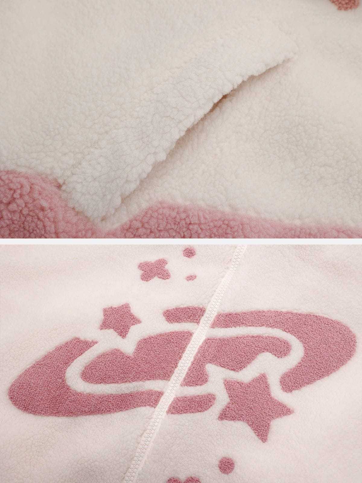 Stay warm and on trend with this cozy Aelfric Eden Star Sky Sherpa Coat! It has a sherpa design with a beautiful star sky pattern to make you sparkle in the sky. Get ready for any adventure with this stylish and comfortable coat!