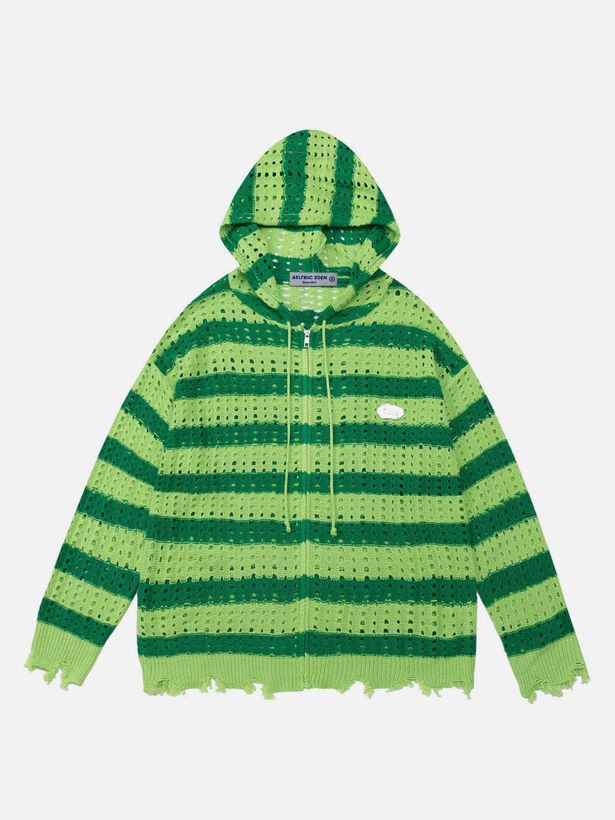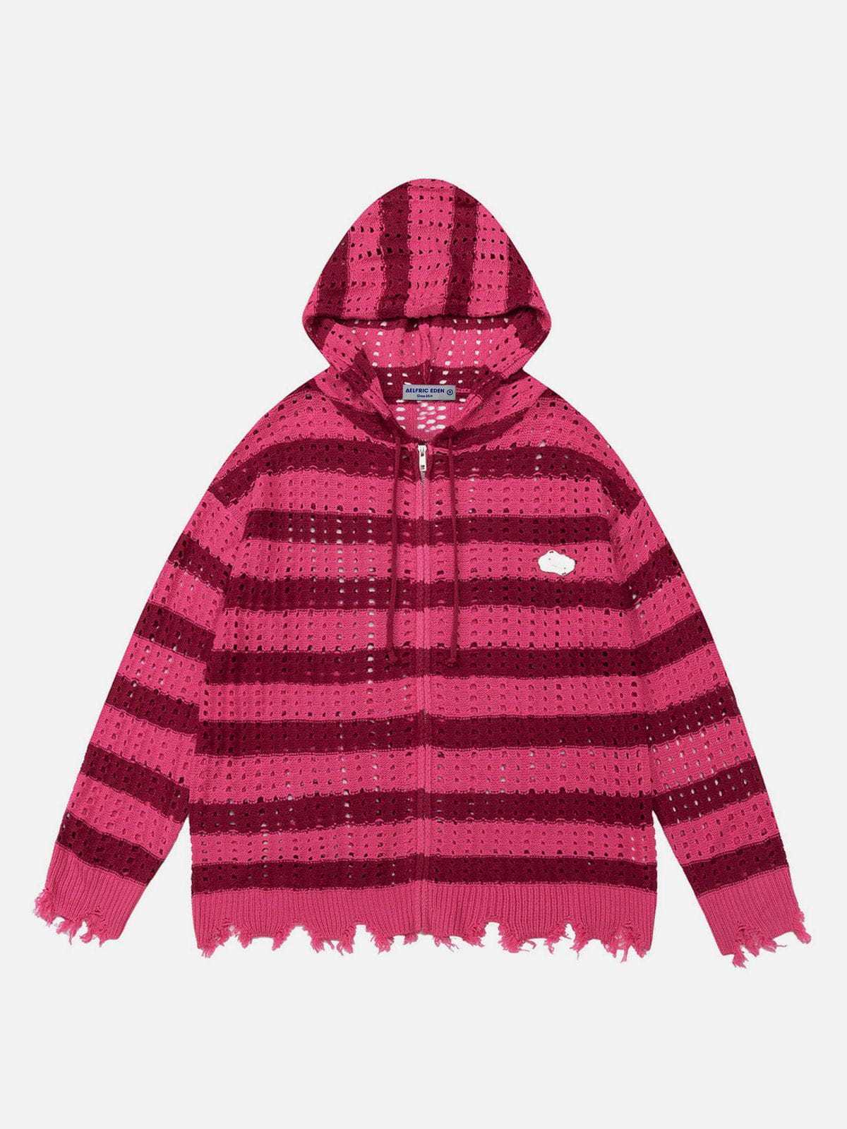 Stripe Knit Distressed Hoodie