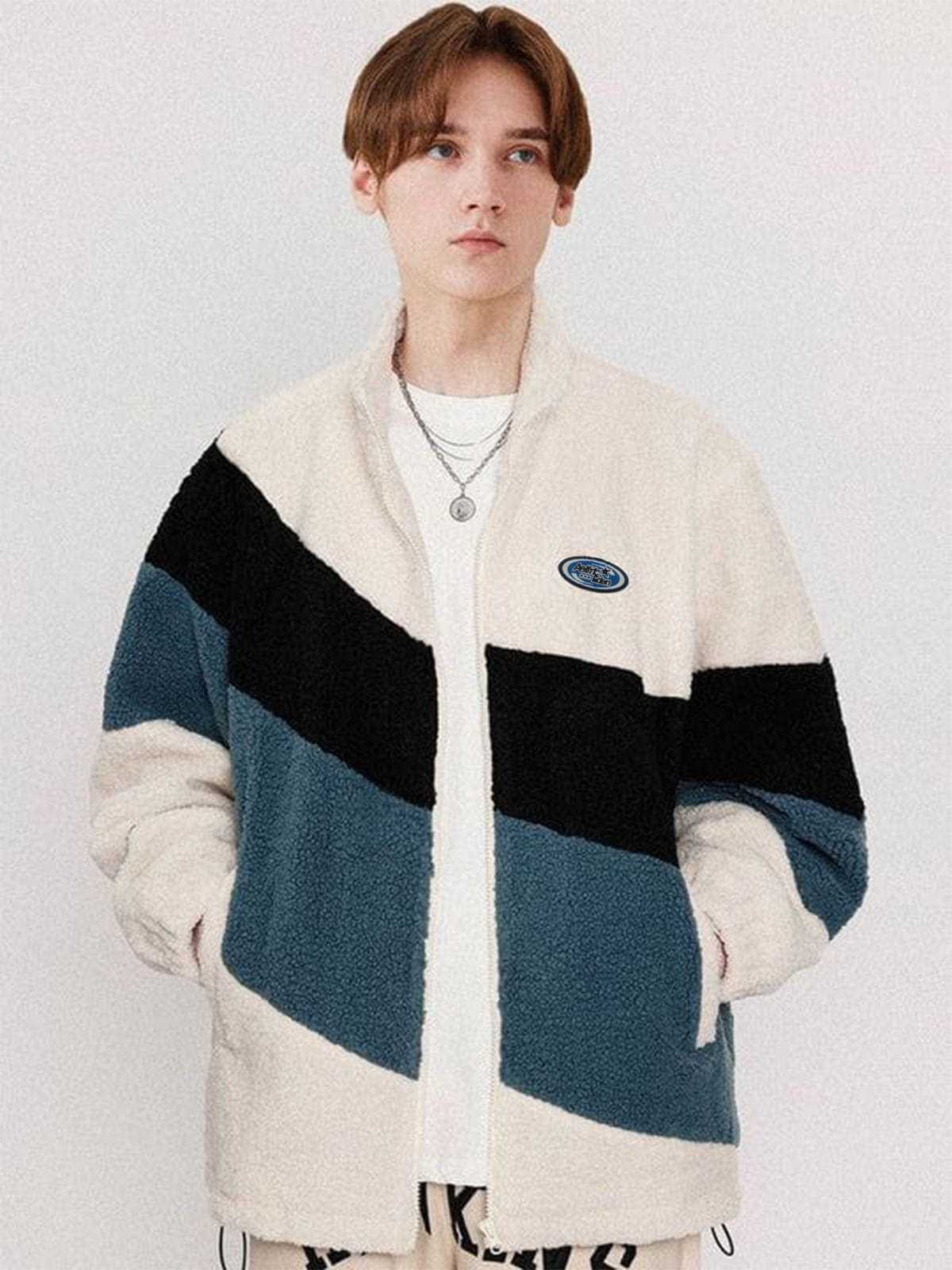 Three-color Patchwork Sherpa Coat