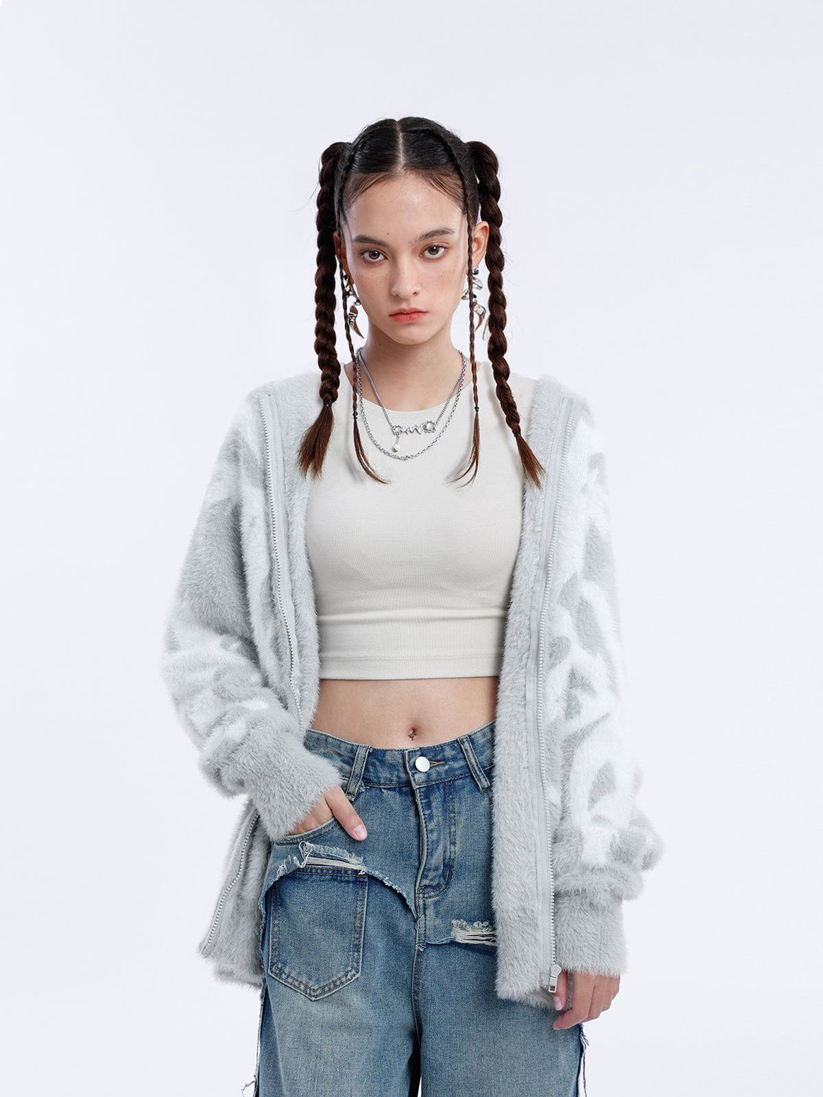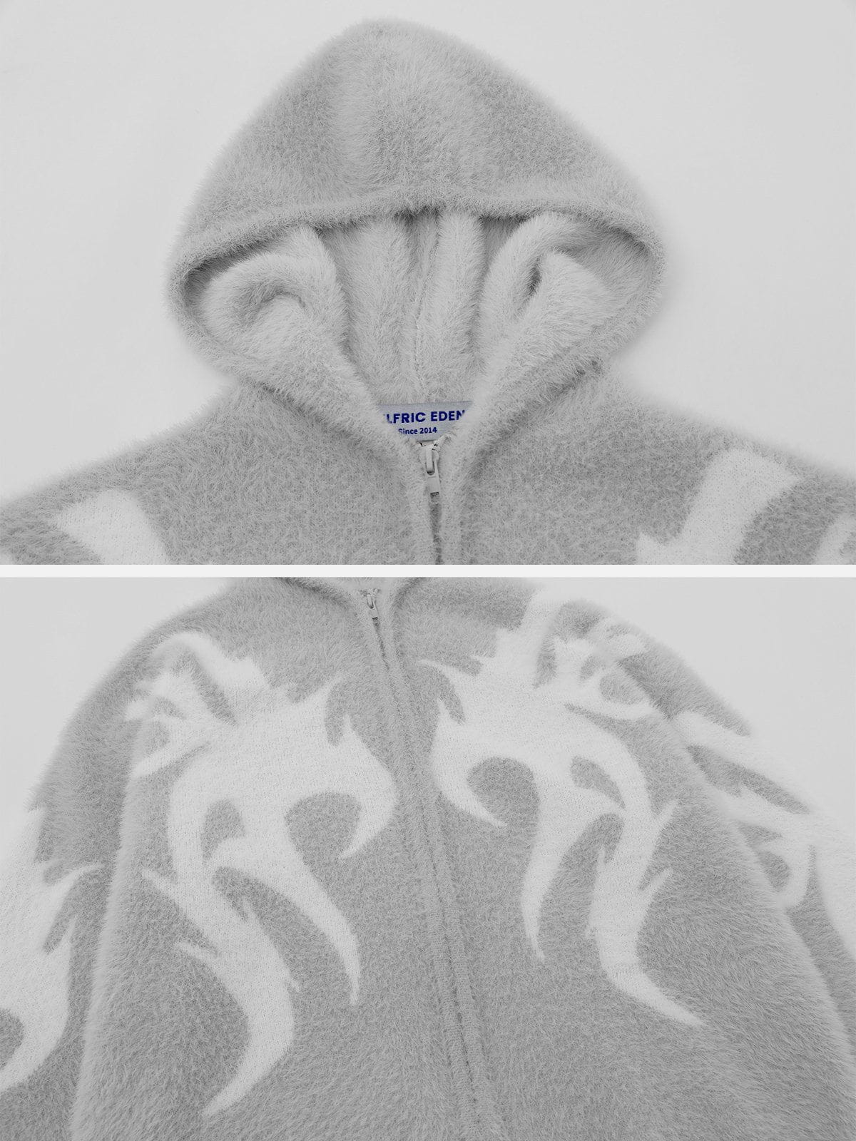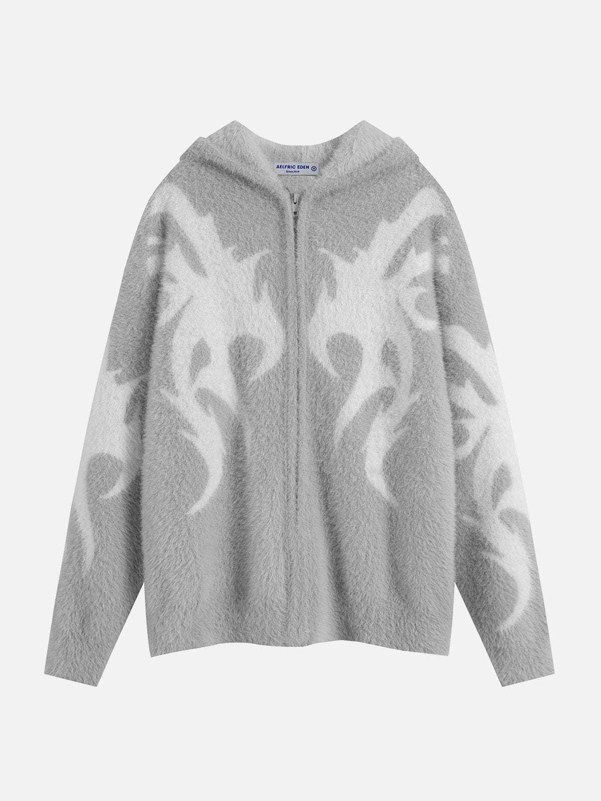 This hoodie is meticulously woven from high-quality knit material, ensuring exceptional softness and a snug fit against your skin. The pattern design sprawled across the sweater's surface adds an ethereal charm to your look, embodying a sense of freedom and grace.