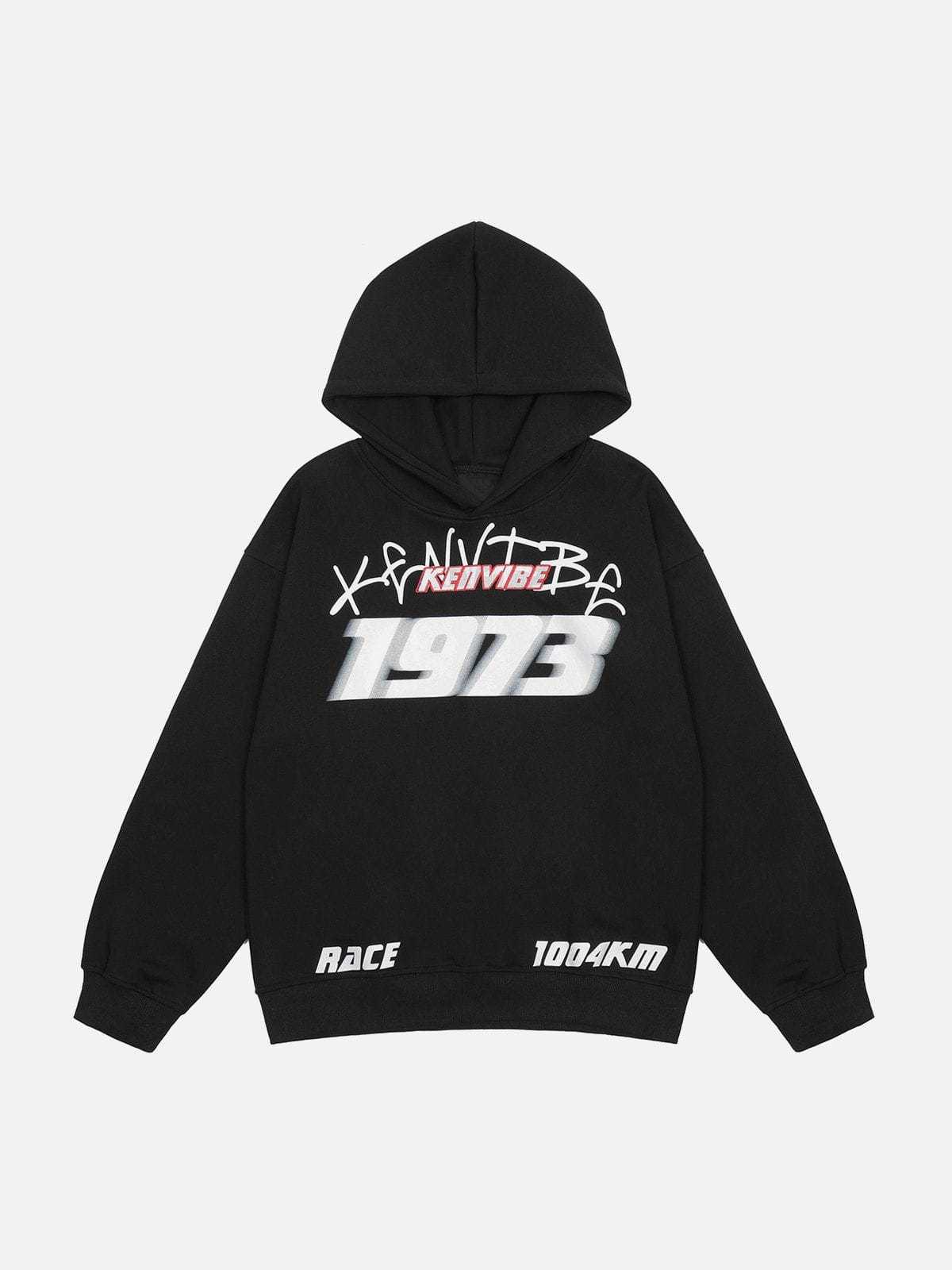 Vertigo Number Print Embroidered Hoodie