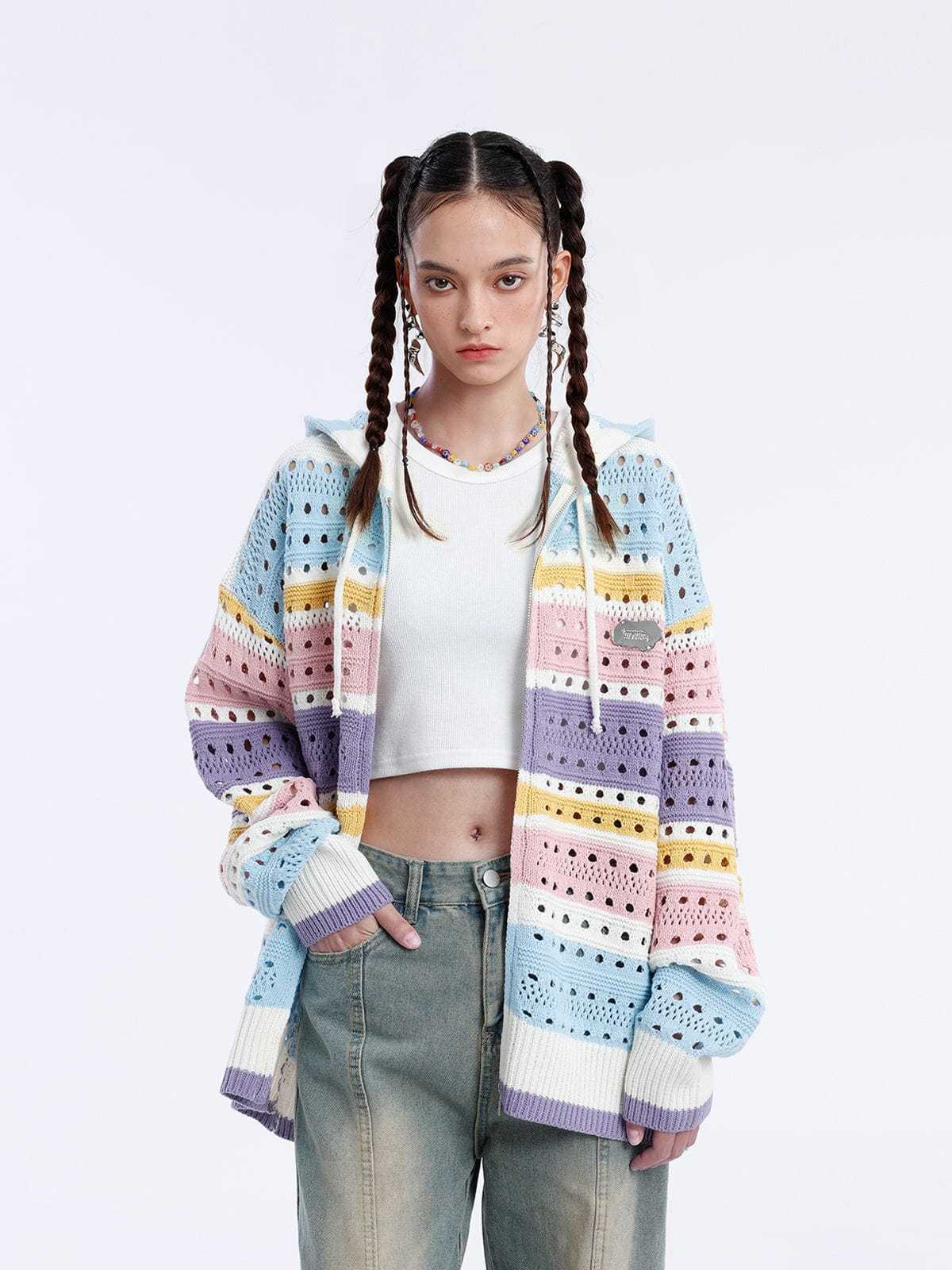 Vintage Stripe Mesh Hoodie