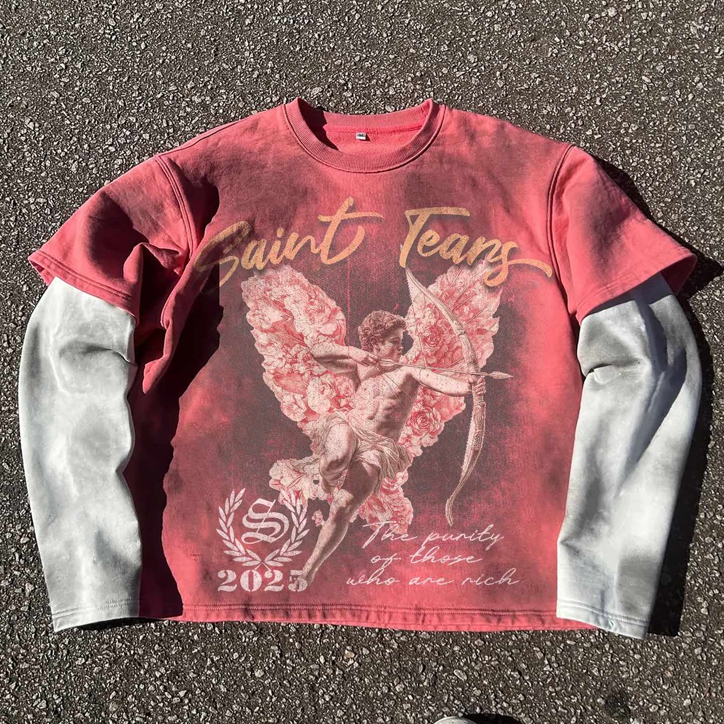 Angel Cupid casual street retro stitching long-sleeved T-shirt