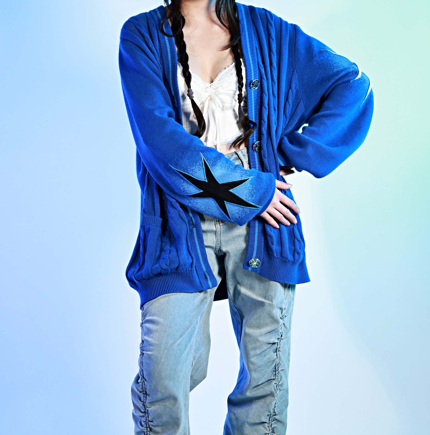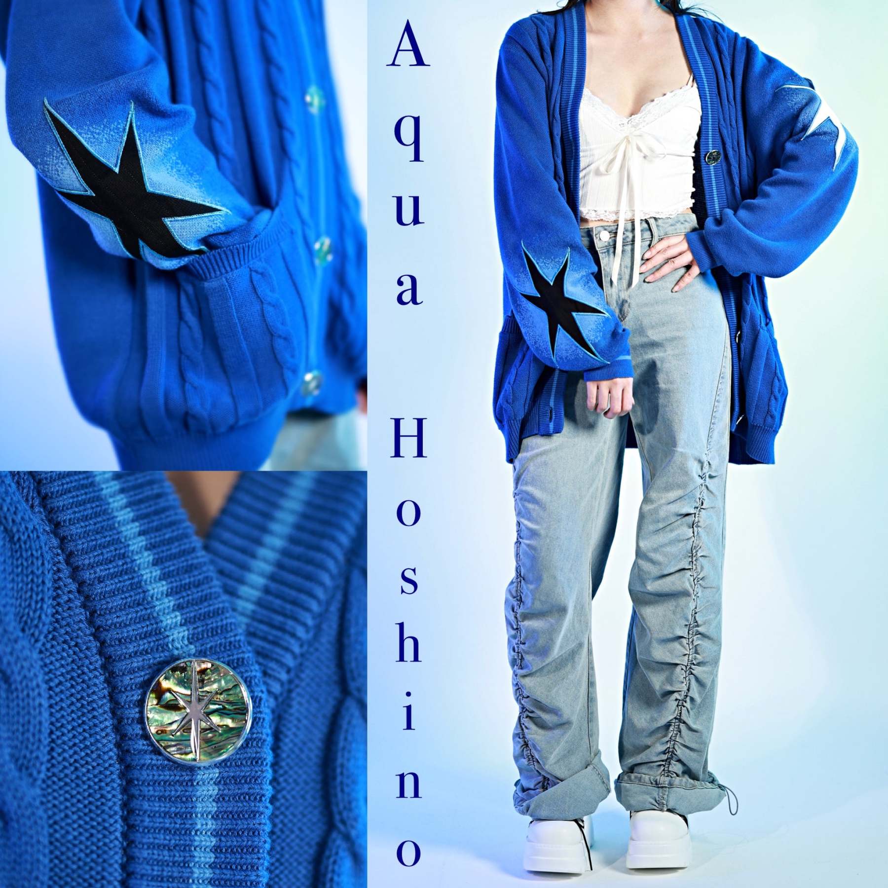 This cardigan is designed to make you feel like an idol! It is made from luxurious gradient jacquard knit. We also used a very special material for the buttons. The abalone shell used for these buttons is one of the rarest natural shells. Each button is one of a kind and stands out with its beautiful colors that resembles Ai in a similar way how Ruby's and Aqua's eyes resemble her. The cardigan is soft to the touch and perfect for stunning casual anime outfits or subtle cosplays. The back also features a very high details embroidery pattern inspired by Aqua's life in the show business. The embroidery pattern takes hours to stitch out and makes this piece feel even more luxurious even though you don't have to pay fortune like at a luxury store.