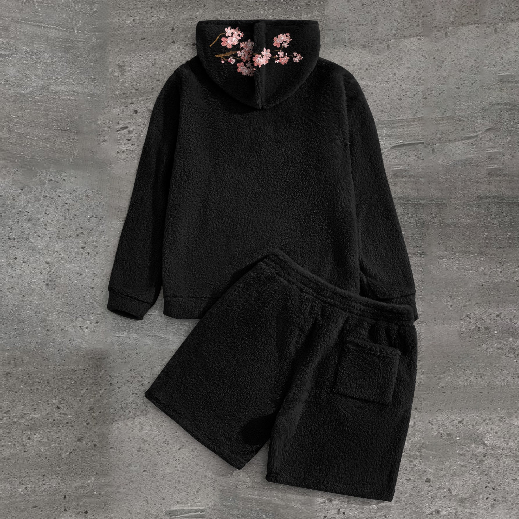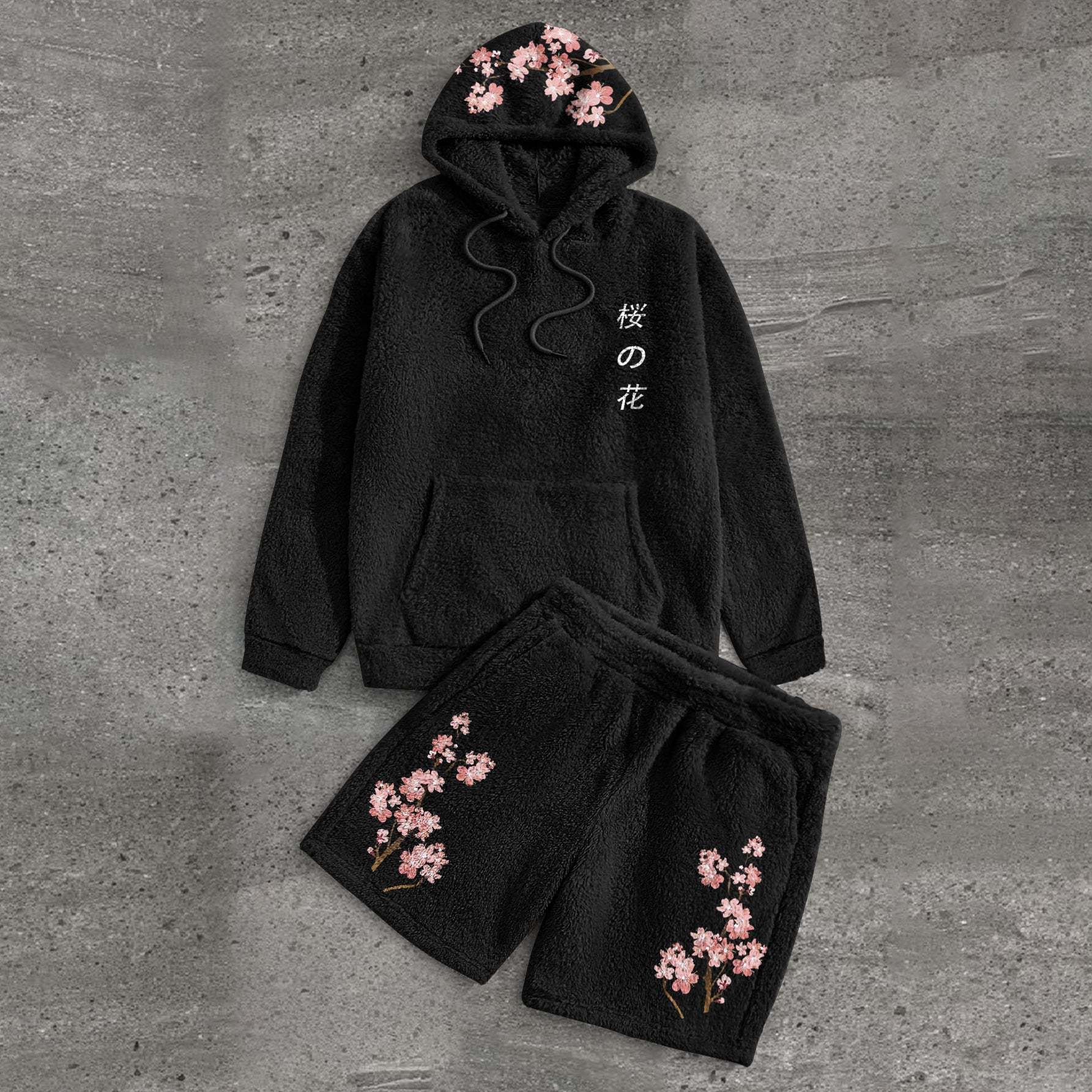 Art Print Plush Hoodie Shorts Street Suit
