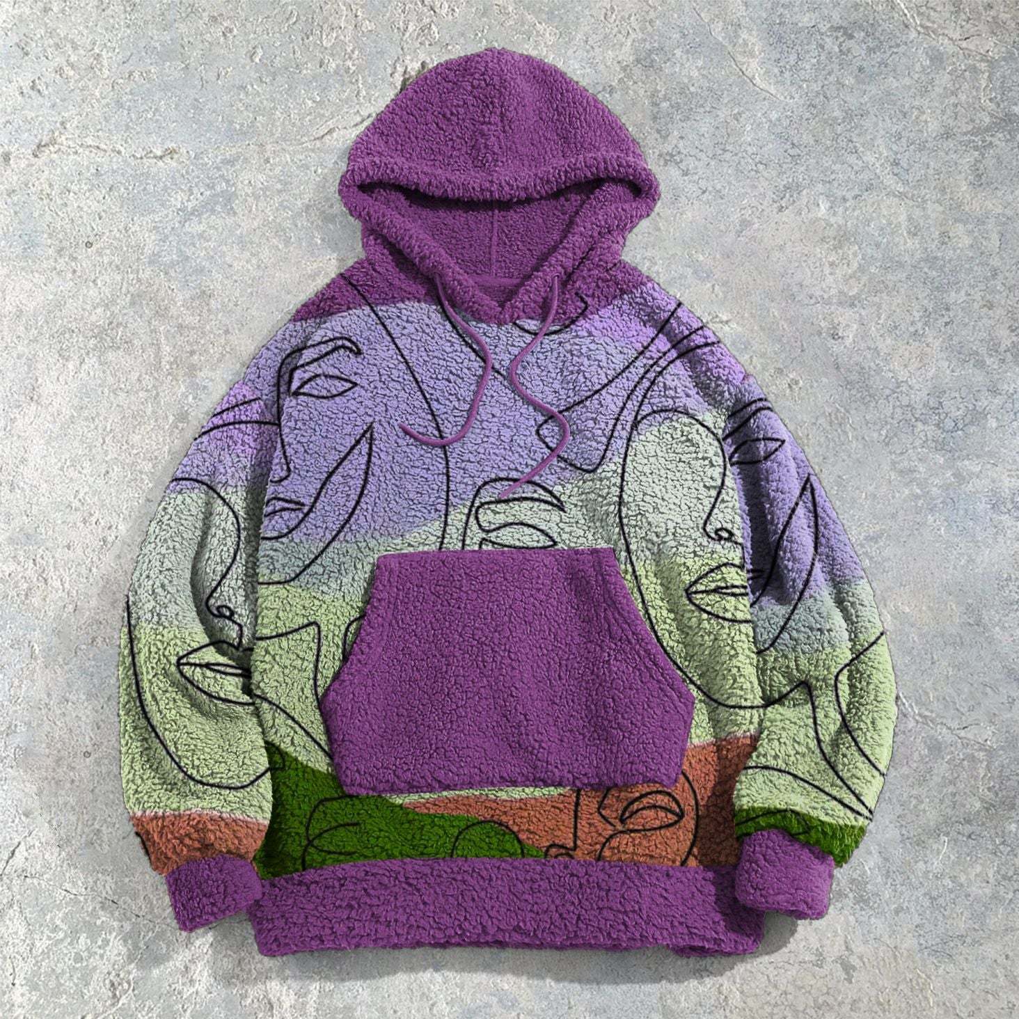 Art retro purple loose hoodie