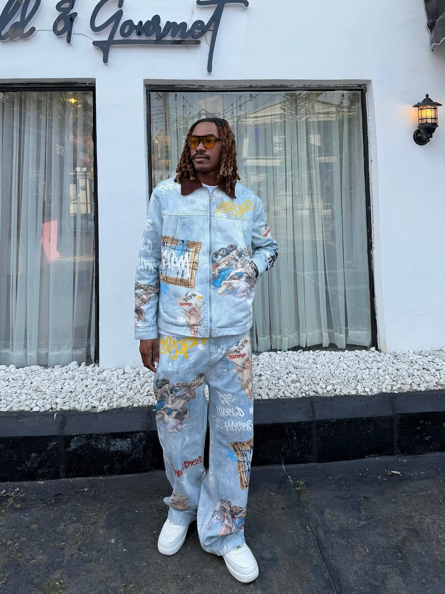 Artistic Patches Graphic Distressed Denim Jacket - 2573