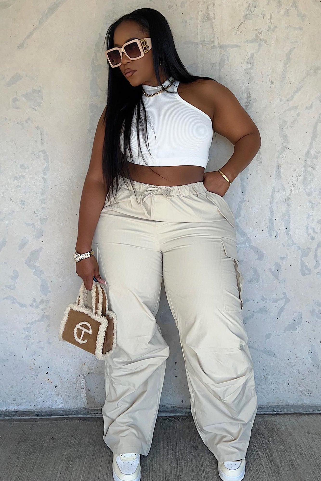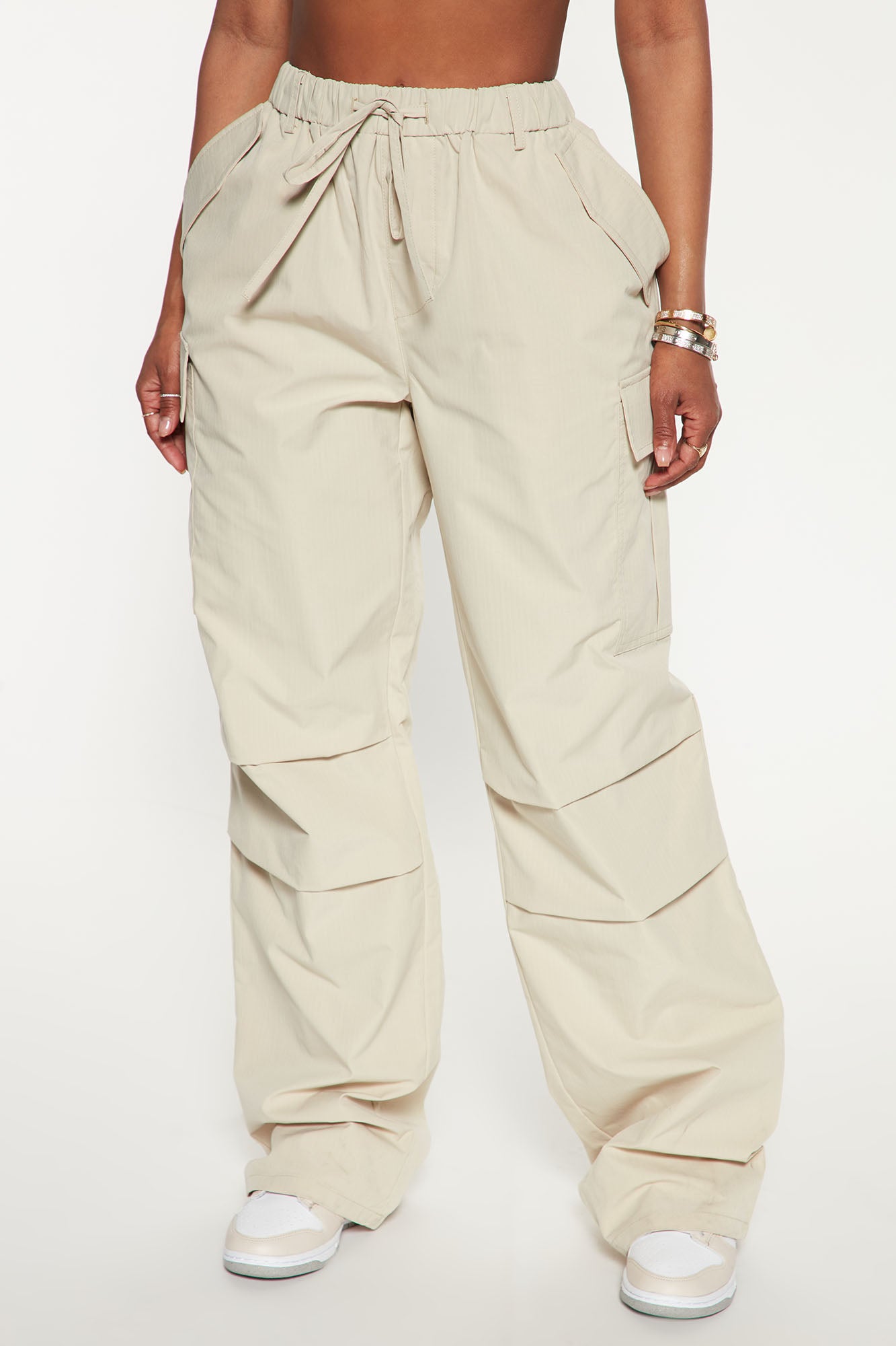 Bad Habits Slouchy Cargo Parachute Jogger - Taupe