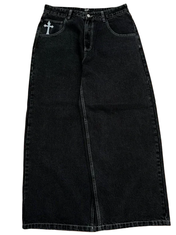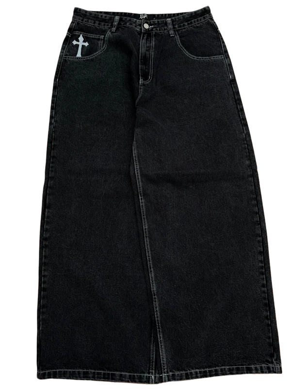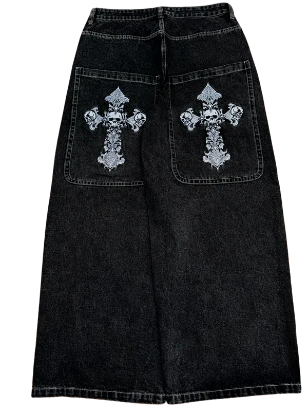 Black Wideleg Skull Cross Jeans