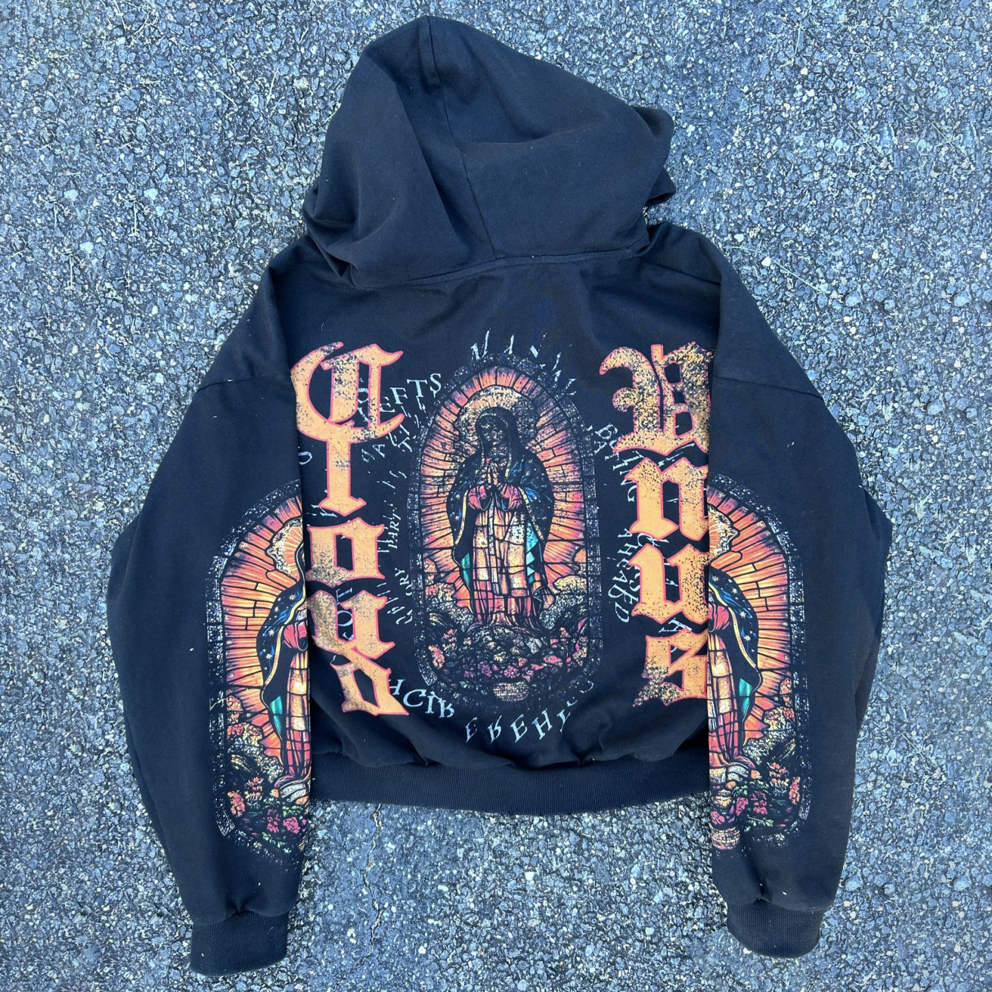 Blessed Soldier Print Long Sleeve Zipper Double Layer Hats Hoodies