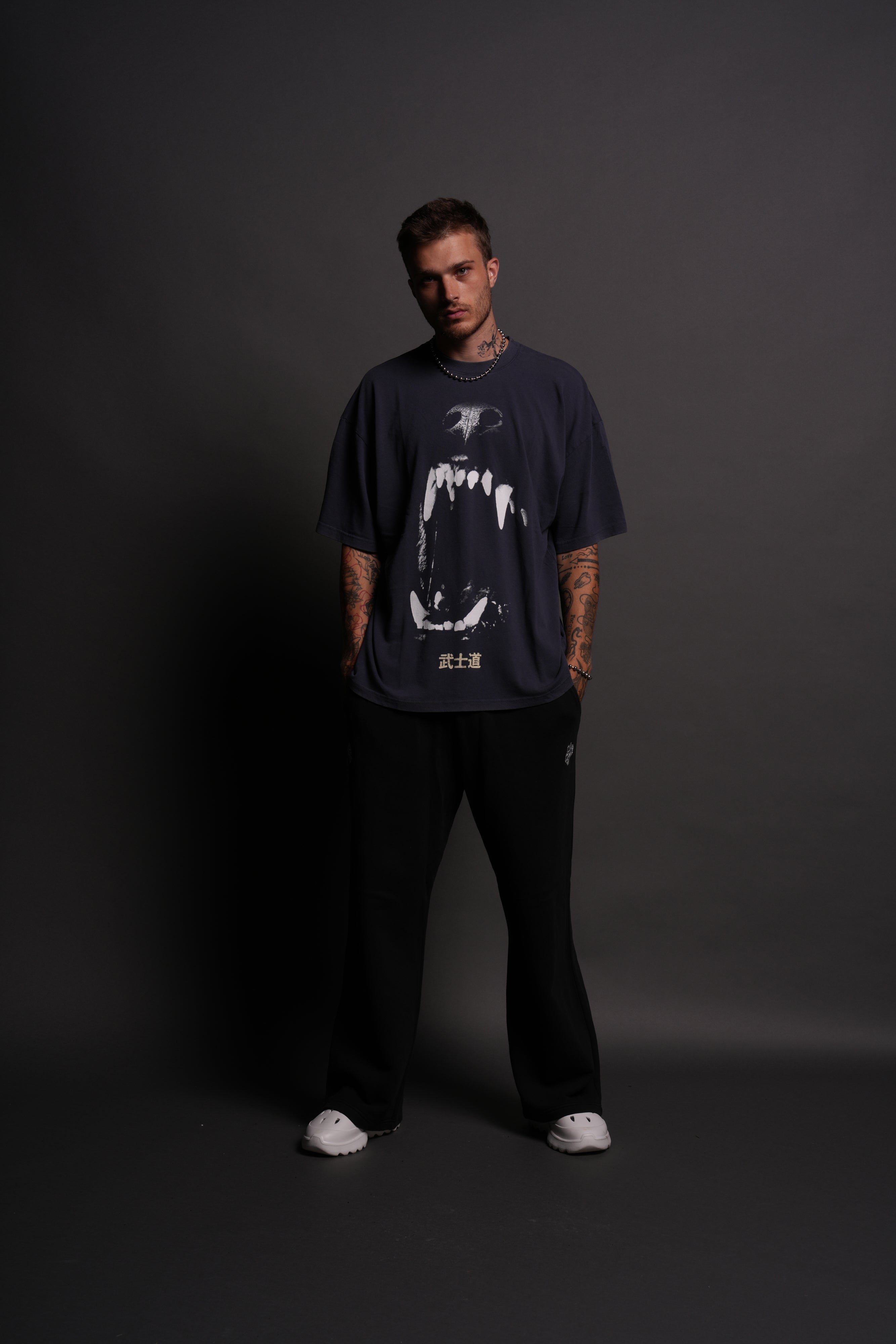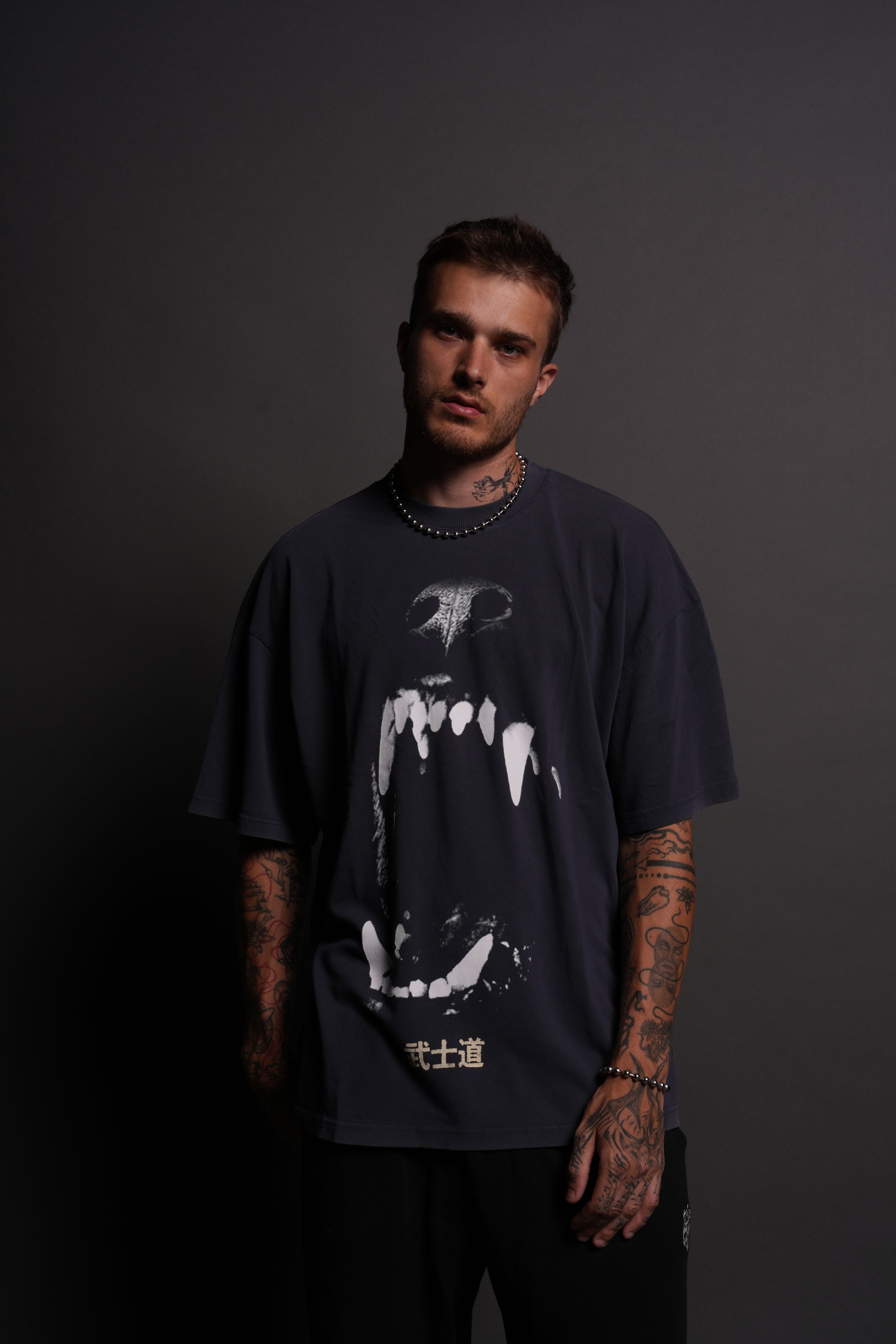 Blood Thirsty Kanji "Premium" Oversized Tee in Midnight Blue