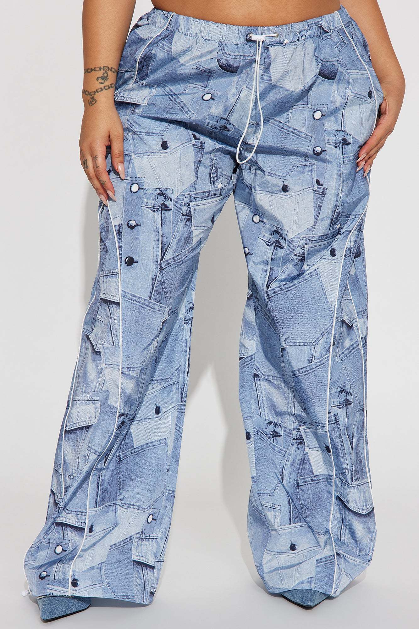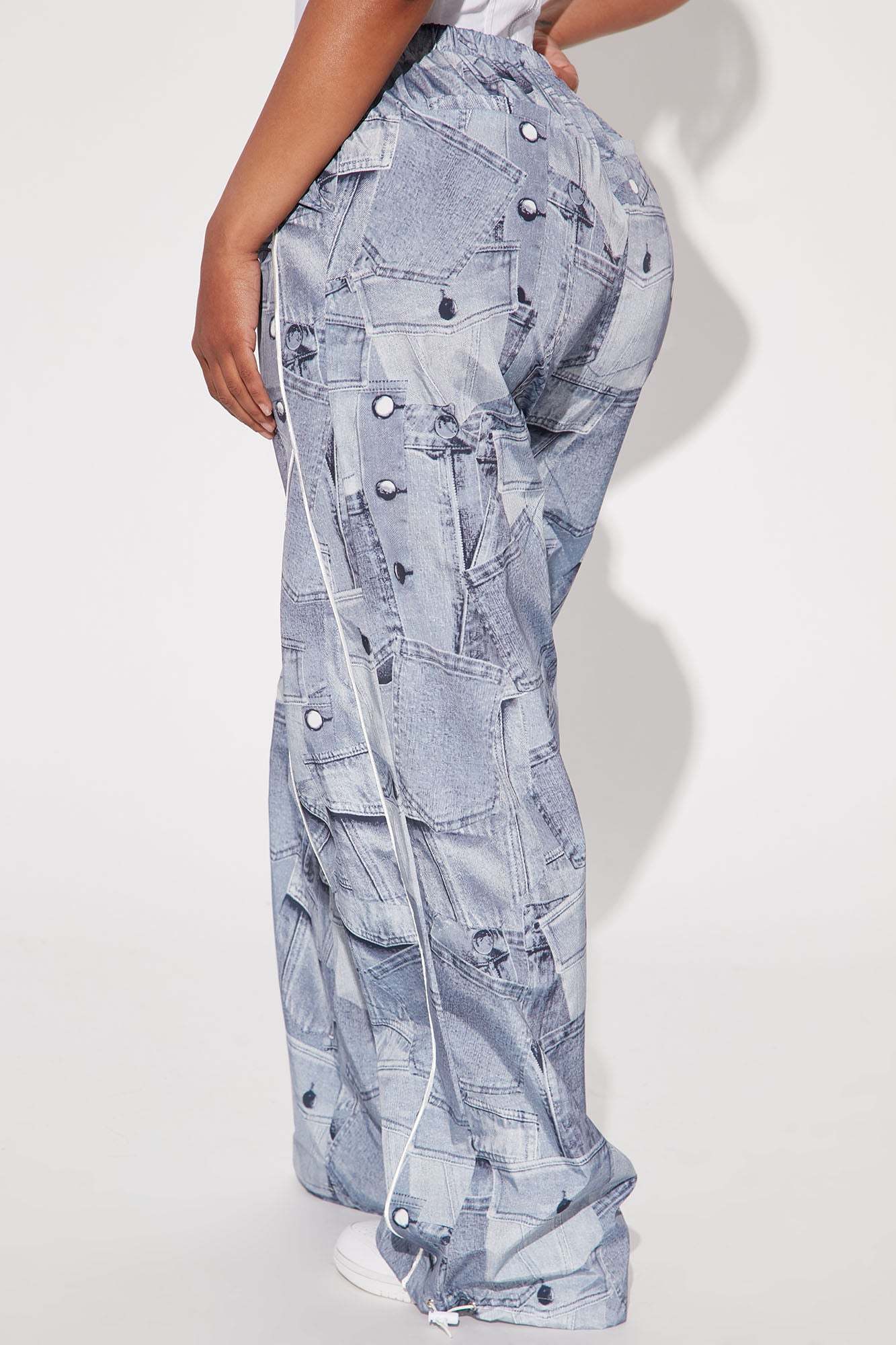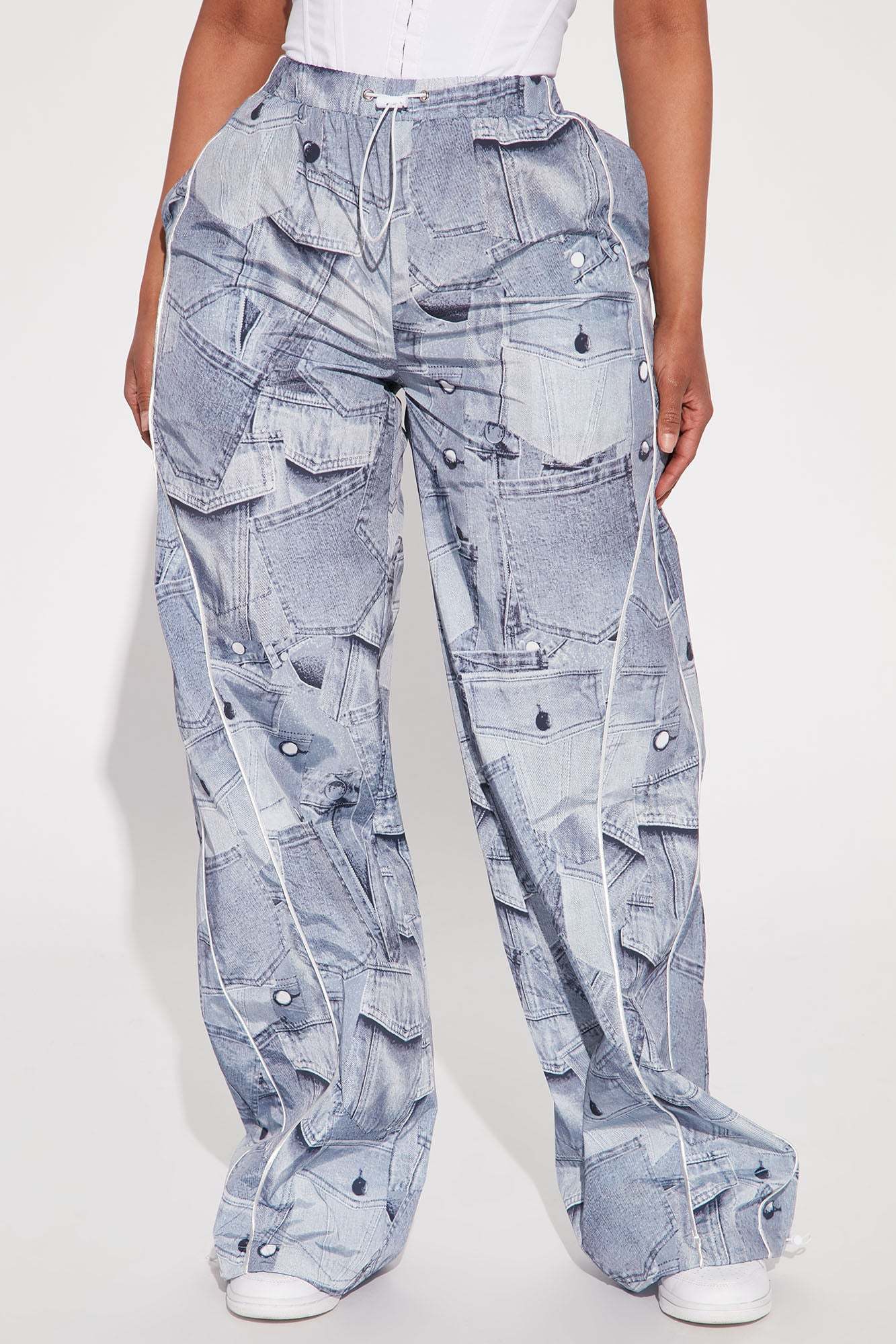 Brittney Printed Denim Parachute Pant - Blue/combo