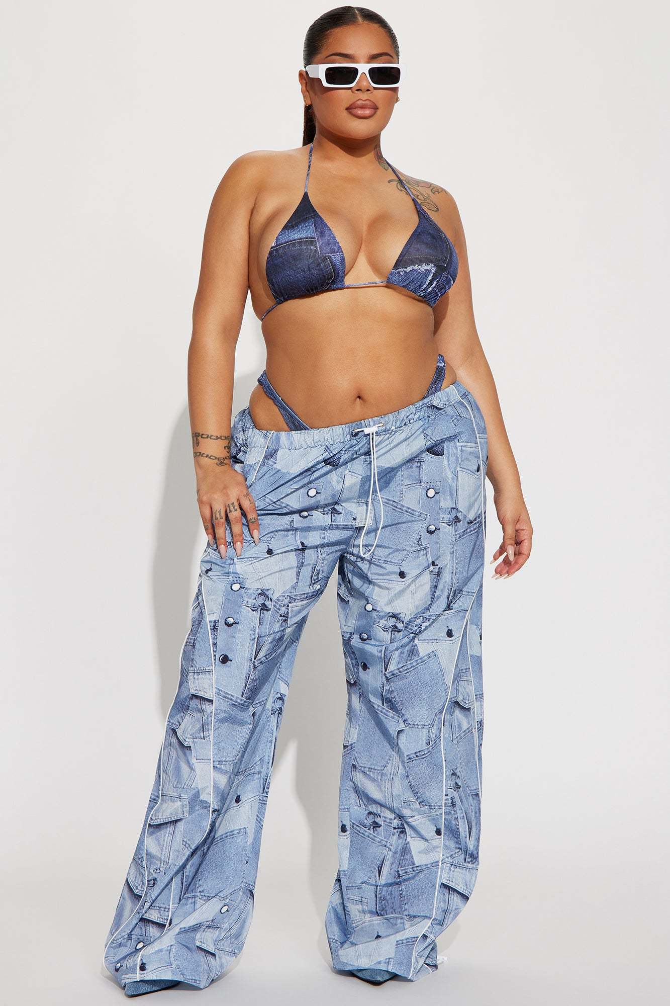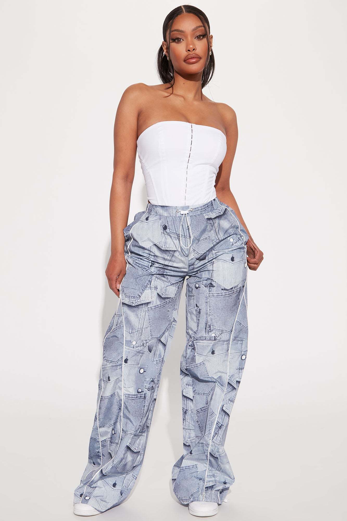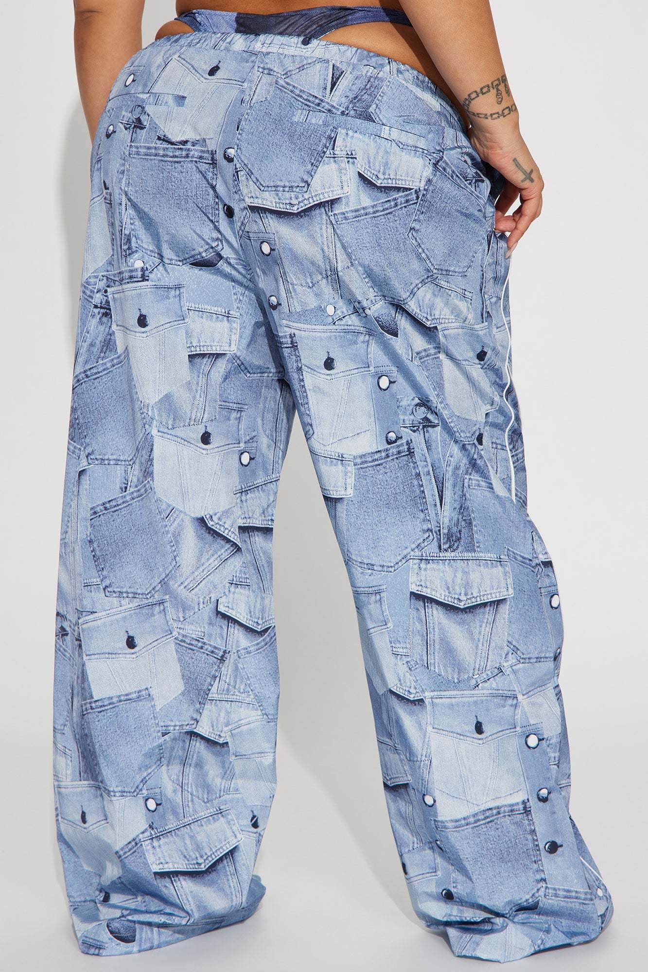 Brittney Printed Denim Parachute Pant - Blue/combo