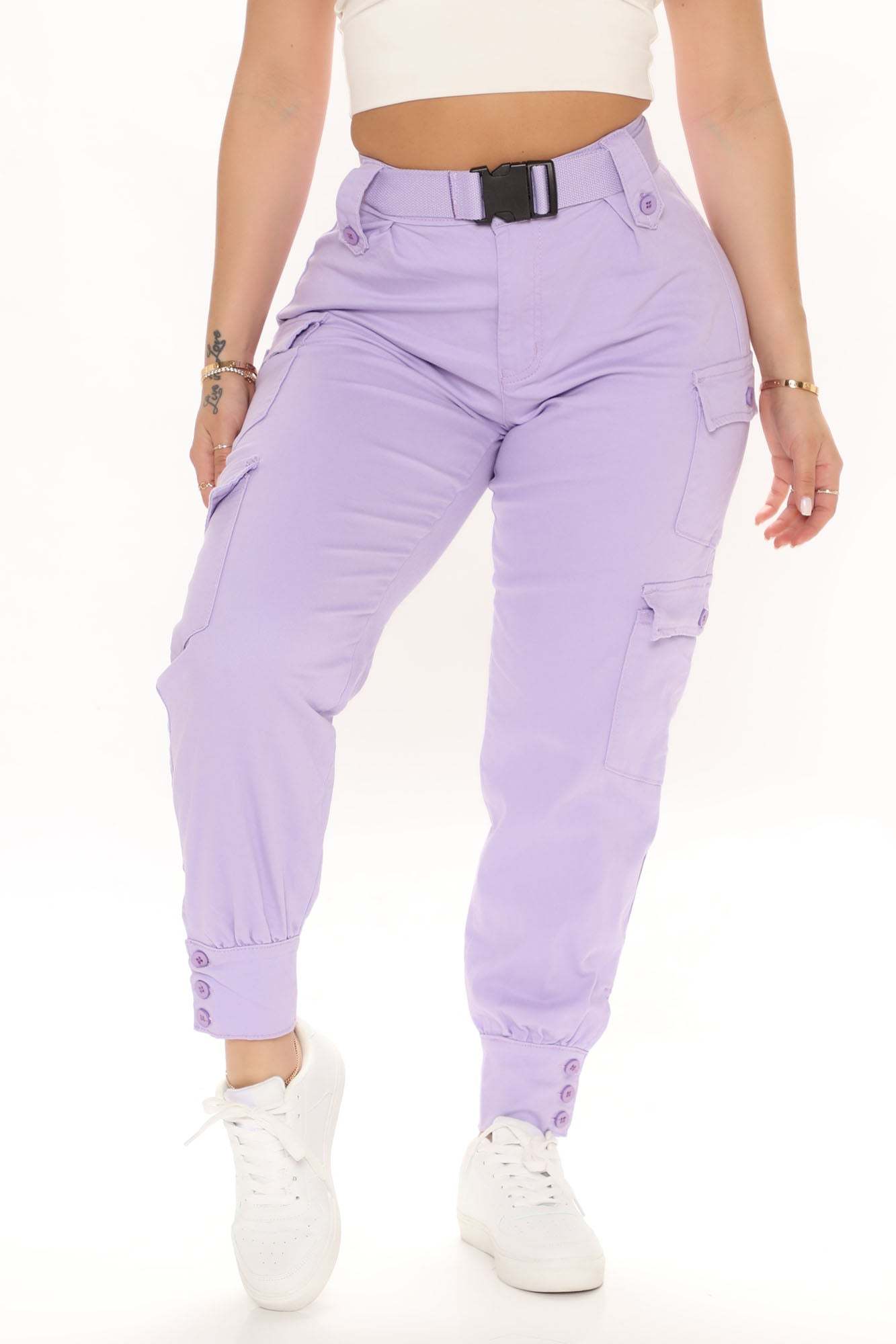 Buckle Up Babe Cargo Joggers - Lavender