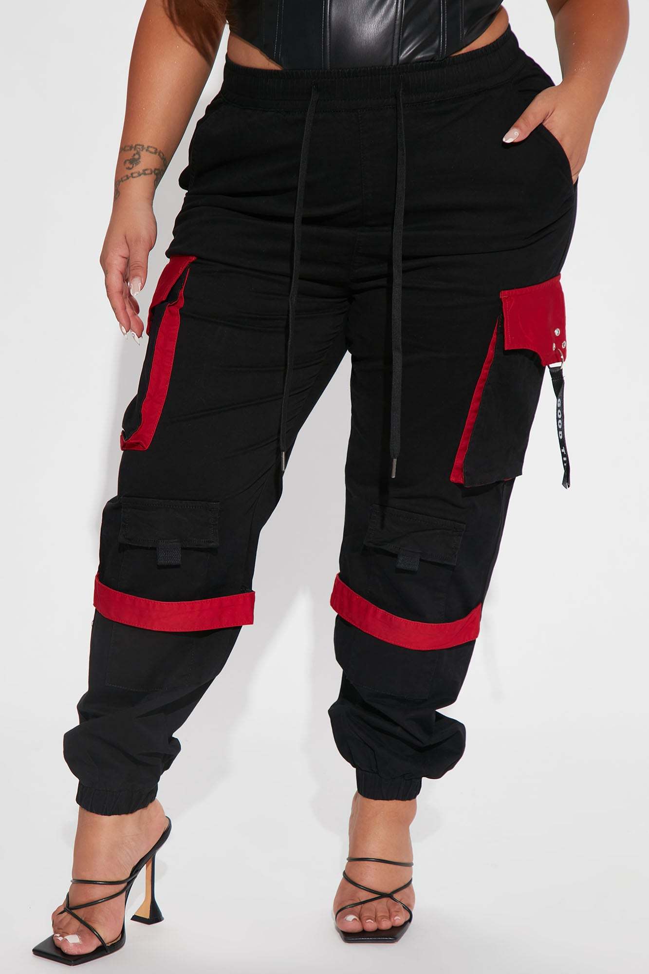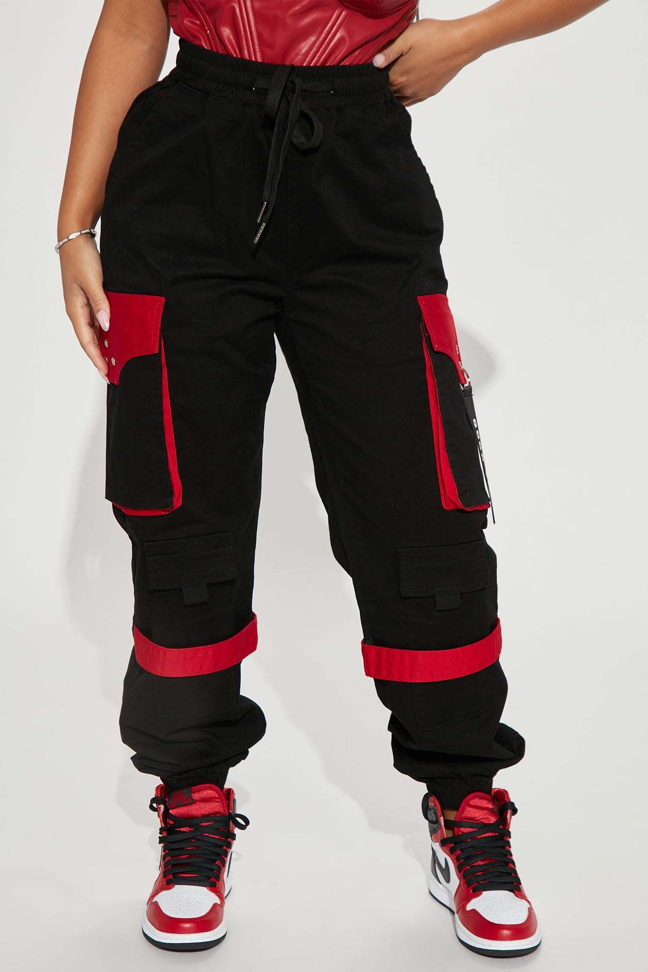 Can't Get With You Cargo Pant - Black/Red